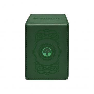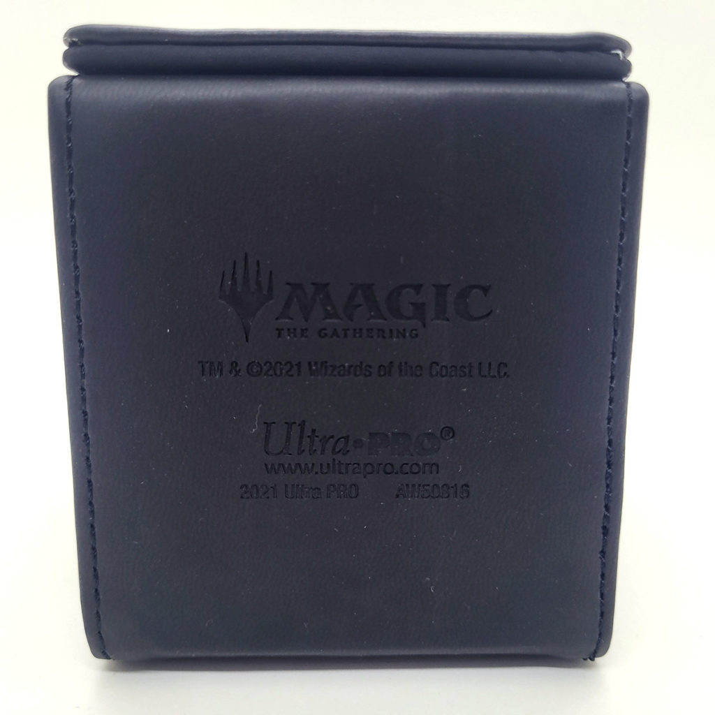 Für alle Magic: The Gathering Fans - diese offiziell lizenzierte Deck Box ist einfach nur genial! Das Alcove Flip Design mit dem ikonischen Sumpf-Symbol auf Kunstleder sieht nicht nur cool aus, sondern ist auch super praktisch.\n\nMit Platz für bis zu 100 doppelt gesleeved Karten in Standardgröße hast du dein komplettes Deck sicher verstaut. Der starke Magnetverschluss mit zusätzlichem Riegel sorgt dafür, dass nichts herausfällt - selbst in der Tasche.\n\nDie beiden Daumenkerben machen das Öffnen super einfach, und das Innere ist mit stylischen Sumpf-Symbolen auf schwarzem Hintergrund verziert. Hergestellt aus langlebigem Kunstleder, das auch bei regelmäßiger Nutzung nicht so schnell abnutzt.\n\nOb für Turniere, Spieleabende oder einfach nur zur sicheren Aufbewahrung deiner wertvollen Karten - diese Deck Box ist ein Must-Have für jeden echten Magic-Spieler!