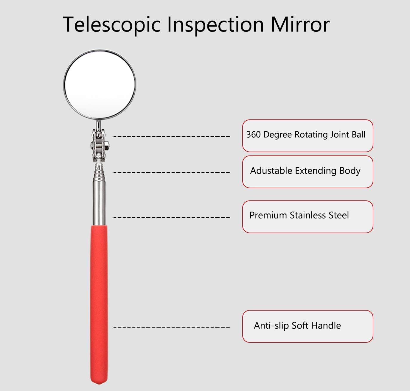 Sieh was andere nicht sehen! Der Gatuida Inspektionsspiegel mit 80x50mm Spiegelfläche macht versteckte Ecken sichtbar. Voll flexibel und 360° drehbar - perfekt für schwer erreichbare Stellen am Auto. Ob Motorraum, Unterboden oder andere versteckte Winkel - dieser Spiegel zeigt dir alles. Aus Edelstahl gefertigt und mit klarer Reflektion. Super für Mechaniker, Hobby-Schrauber oder einfach für die Auto-Kontrolle zu Hause. Leicht, handlich und mega praktisch. Nie wieder blind arbeiten - mit diesem Spiegel behältst du den vollen Durchblick!