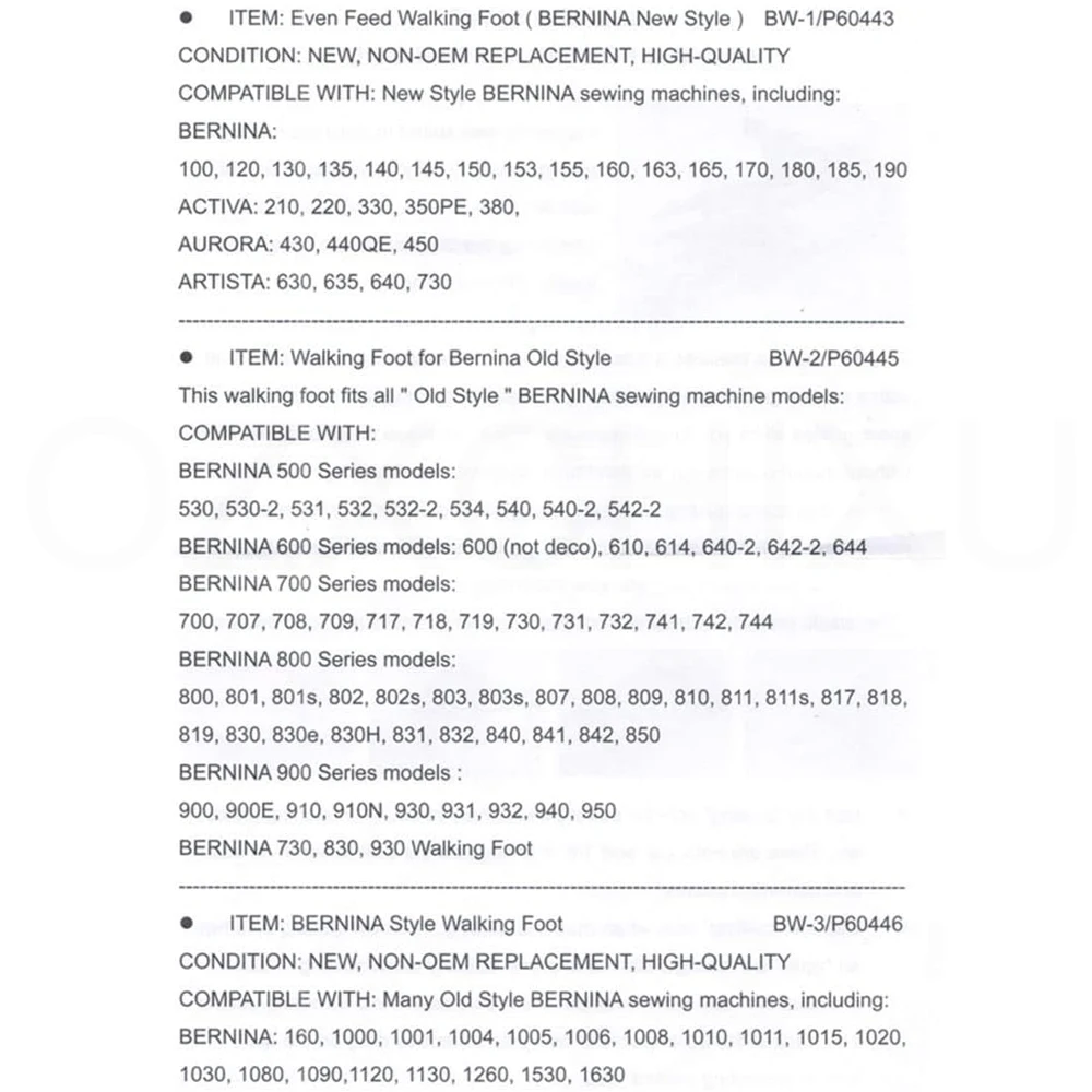 Perfekter Ersatzfuß für deine alte Bernina Nähmaschine! Dieser hochwertige Gehfuß mit Steppführungen (Teilenummer P60445) passt auf zahlreiche Bernina Old Style Modelle. Kompatibel mit 730, 830, 930, 900, 910, 931, 932, 940, 950 und vielen weiteren Modellen aus der Bernina Old Style Serie. Hergestellt in Taiwan in erstklassiger Qualität - zwar kein Original Bernina Teil, aber in gleicher Präzision gefertigt! Ideal für alle, die ihre geliebte alte Bernina wieder voll nutzen wollen. Der Fuß sorgt für gleichmäßige Nähte und macht das Steppen zum Kinderspiel. Einfach aufstecken und losnähen! Perfekt für Quilting, Patchwork oder normale Näharbeiten. Wenn dein Originalfuß kaputt gegangen ist oder du einfach Ersatz brauchst - hier bist du goldrichtig! Deine Bernina wird es dir danken und näht wieder wie am ersten Tag. Ein unverzichtbares Zubehör für jeden Bernina-Besitzer!