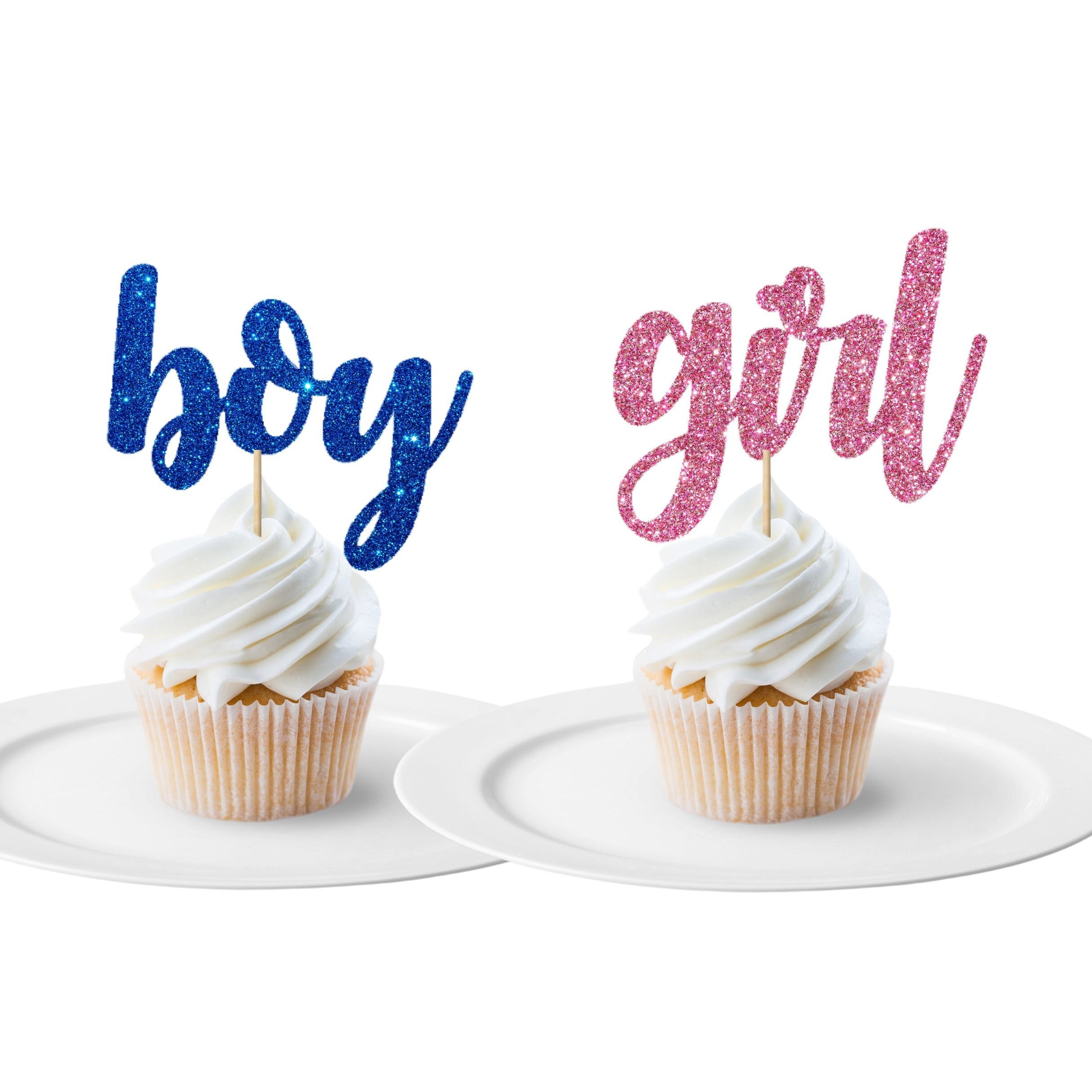 Mach die Enthüllung des Babygeschlechts zu einem unvergesslichen Erlebnis! Dieses umfangreiche Deko-Set enthält 48 Glitzer-Cupcake-Toppers (24 für Jungen, 24 für Mädchen), plus ein Banner und ein großes Schild in den Farben Rosa und Blau. 16 verschiedene Designs sorgen für Abwechslung auf deiner Party.
