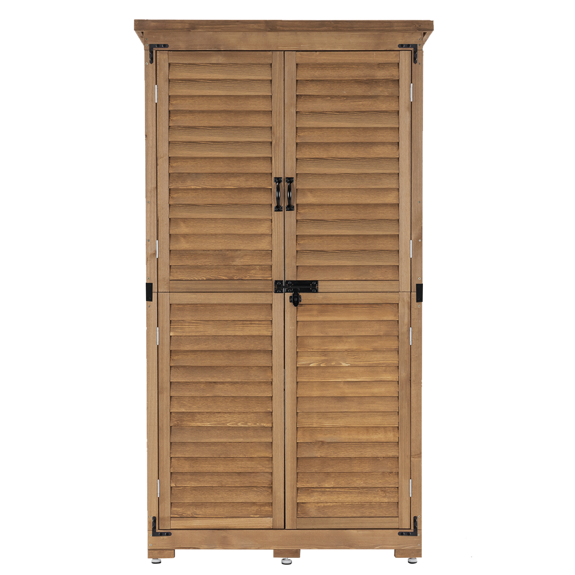 Endlich Ordnung im Garten! Dieser massive Gartenschrank aus Holz bietet reichlich Platz für all deine Gartengeräte. Mit 160 x 87 x 47 cm (BxHxT) findest du darin problemlos Rasenmäher, Gartenmöbel, Werkzeuge und mehr. Das schräge Dach mit wasserdichter Asphaltbeschichtung leitet Regenwasser zuverlässig ab - keine Staunässe, kein Eindringen von Feuchtigkeit. Drei höhenverstellbare Regale sorgen für flexible Stauraum-Nutzung. Die abschließbare Tür mit Magnetverschluss bietet Sicherheit für deine Geräte, während Lüftungsschlitze Schimmelbildung verhindern. Aus feuchtigkeitsbehandeltem Massivholz gefertigt, ist der Schrank extrem stabil und langlebig. Perfekt für Terrasse, Garten oder Hof - ob für Werkzeuge, Dünger, Spielzeug oder Brennholz. Einfach aufbauen und sich über mehr Ordnung und Platz freuen! Dein Garten wird aufgeräumter, und du findest alles sofort wieder.