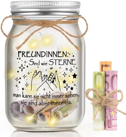 Super clever: Die Flasche hat genug Platz für Geldscheine oder Gutscheine! Einfach das Geld zusammenrollen, mit der beiliegenden Juteschnur binden und in die Flasche stecken. Zusammen mit den LED-Lichtern und Blumen entsteht so eine total persönliche und originelle Geschenkidee.