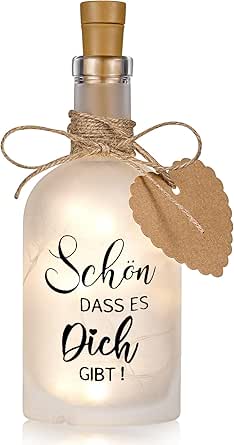 Das perfekte Geschenk für besondere Menschen! Dieses wunderschöne Set enthält eine Glasflasche mit der Gravur 'Schön, dass es Dich gibt', dazu Trockenblumen, LED-Lichter und eine Grußkarte - alles fertig zum Verschenken!