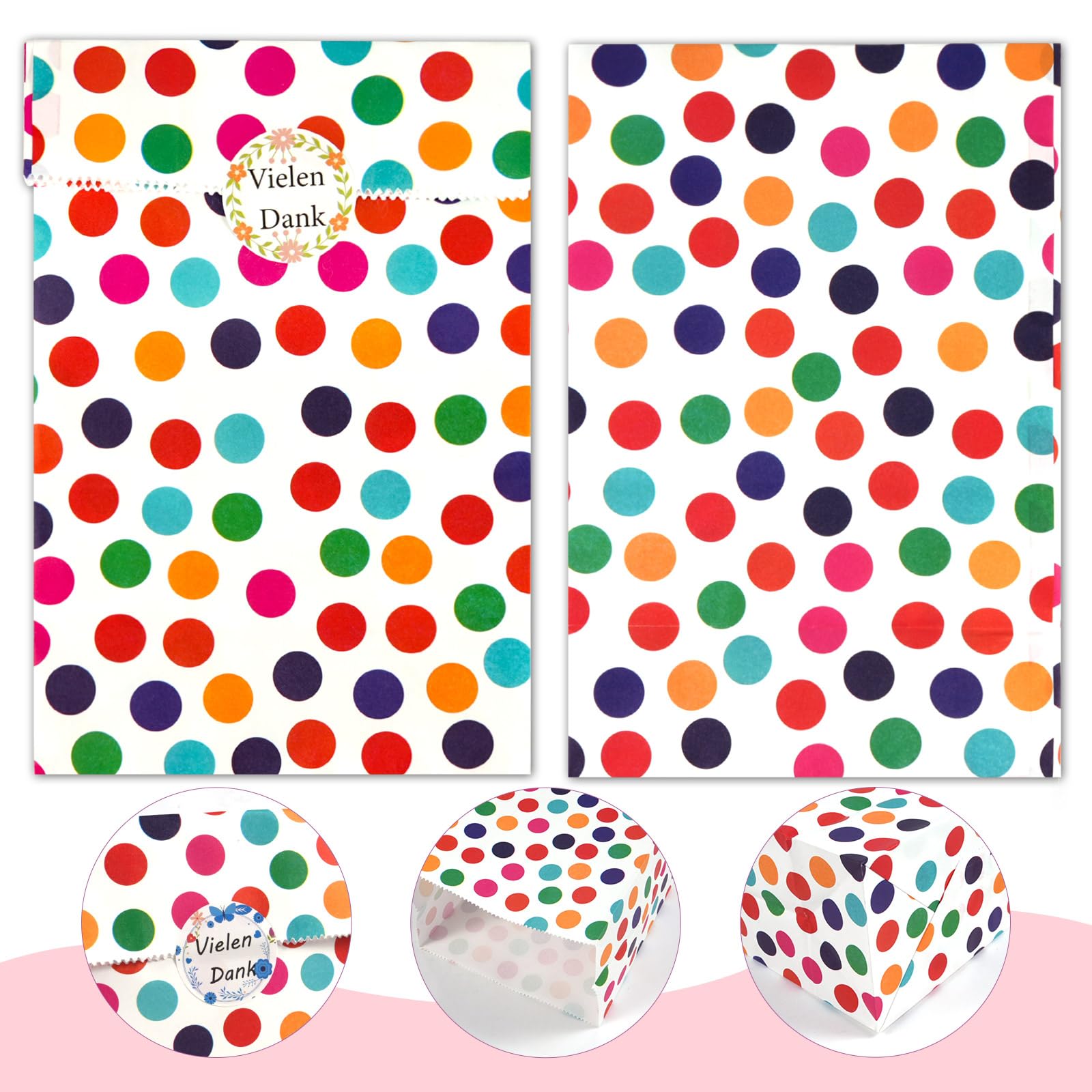 Perfekte Geschenkverpackung für jede Feier! Dieses Set mit 30 Tüten und 36 Stickern lässt keine Wünsche offen.