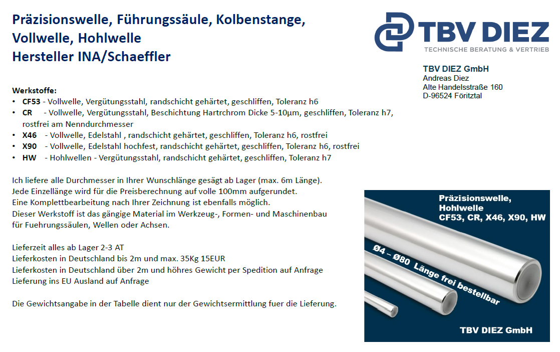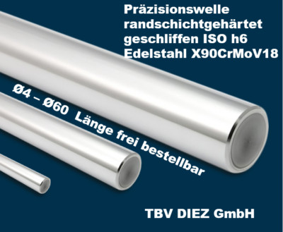 • Präzisionswelle 30mm H6 - 600mm Geschliffen Gehärtet Mit M14 Gewinde