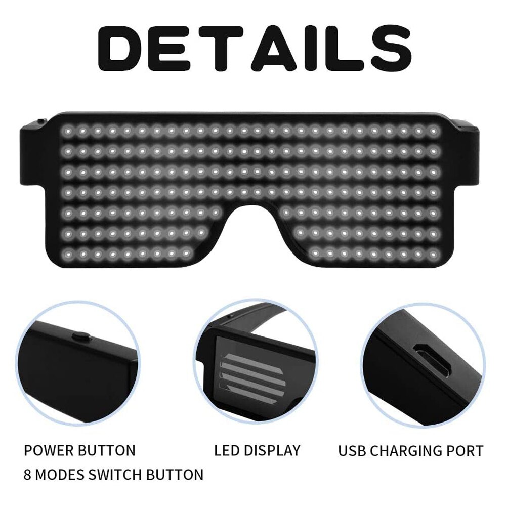 Werde zum absoluten Party-Highlight mit dieser verrückten LED-Brille! Mit 432 LED-Lämpchen bist du der hellste Stern in jeder Nacht. Per Bluetooth verbindest du sie einfach mit deinem Smartphone und kannst über die App eigene Texte, Bilder oder sogar Kritzeleien anzeigen lassen. 22 coole Animationen sind schon vorinstalliert - oder du lässt deiner Kreativität freien Lauf! Besonders cool: Der Rhythmus-Modus, wo die Brille im Takt der Musik blinkt und sogar auf deine Stimme reagiert. Mit nur 3 Stunden Ladezeit an USB hast du bis zu 5 Stunden Partyspaß. Der ergonomische Rahmen mit weichen Silikon-Nasenpads sitzt perfekt, auch wenn du wild tanzst. Aus robustem ABS-Material und absolut augensicher. Perfekt für Clubs, Festivals, Karneval, Halloween oder jede andere Feier, wo du auffallen willst! Einfach anschalten, App runterladen und die Show beginnt - so einfach macht man sich zum Mittelpunkt der Party!