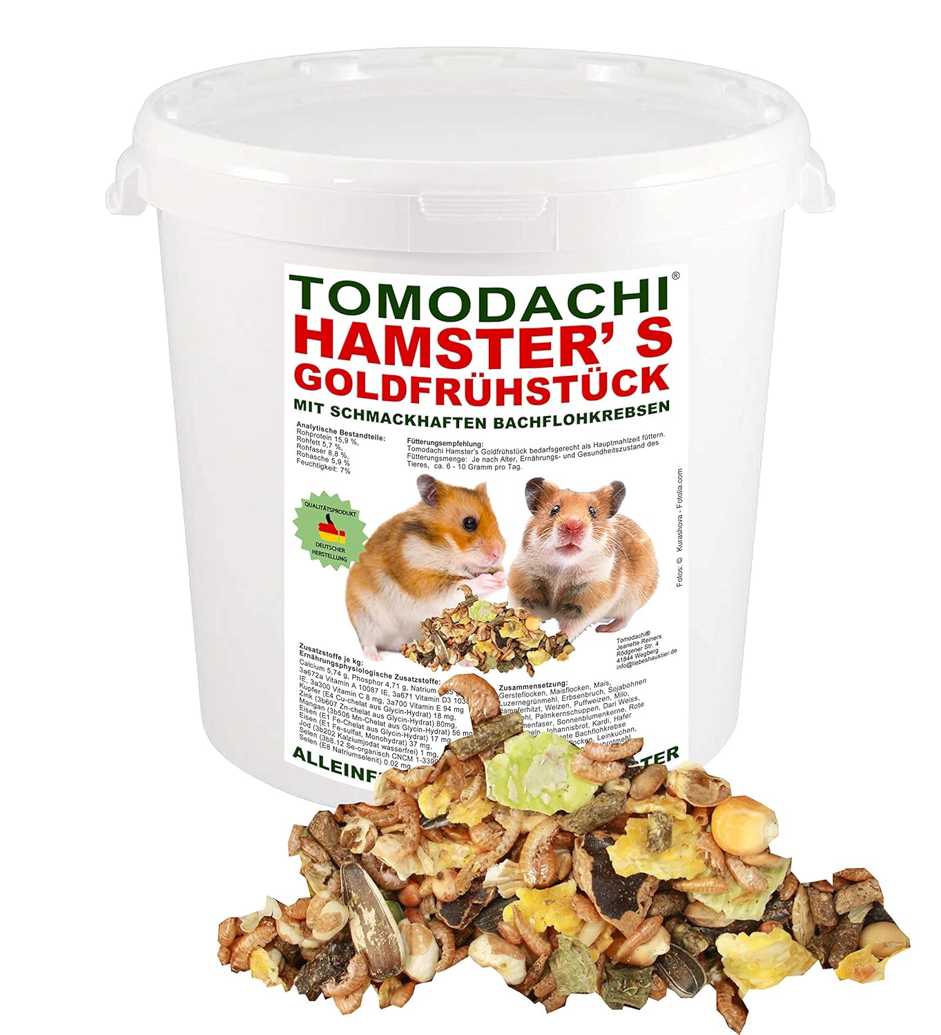 Das Superfood für deine Rennmäuse! Getzoo hat hier eine richtig ausgewogene Mischung zusammengestellt, die der natürlichen Ernährung in der Steppe nachempfunden ist. Enthält Hirse, Kanariensaat, getrocknetes Gemüse wie Karotten und Paprika, hochwertige Kräuter und sogar tierisches Eiweiß in Form von Mehlwürmern und Maden. Alles was deine kleinen Nager für eine gesunde Ernährung brauchen! 500g-Packung reicht für eine Weile. Einfach 1-2 TL pro Tag und Tier füttern. Tipp: Vor dem Öffnen 48 Stunden einfrieren und täglich gut durchmischen. Deine Rennmäuse werden dieses abwechslungsreiche Futter lieben - es schmeckt einfach wie in der Natur!