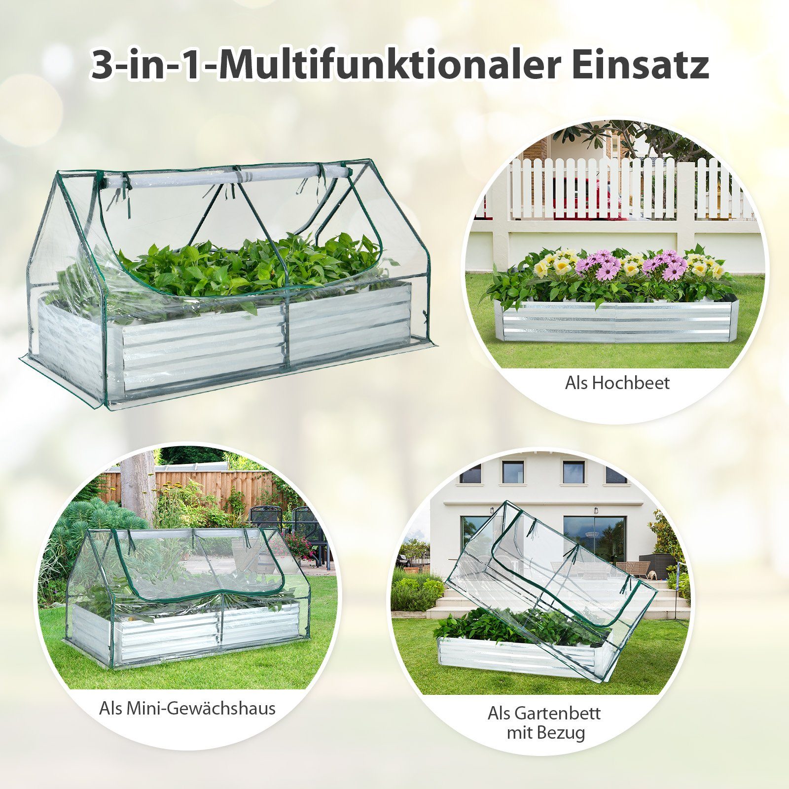 • Mini-Gewächshaus 180x90cm - Schutzhülle Für Hochbeete & Garten