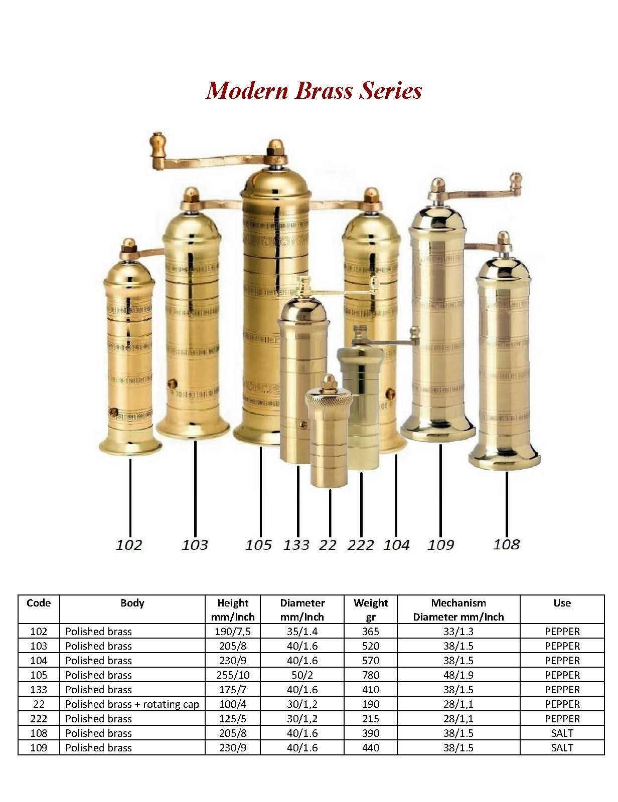 Griechisches Messing Gewürzmühlen Set | 25,4cm Pfeffer & 22,9cm Salz Mühle | Vintage Gold Design