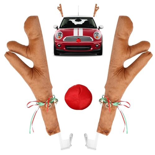 Bring Weihnachtsstimmung auf die Straße! Das lustige Rentier-Set mit Geweih und roter Nase für dein Auto. Aus weichem Stoff, 41x14 cm groß. Passt an fast alle Autos, SUVs und Lieferwagen. Montage mega einfach: Fenster runter, Clip dran, Fenster hoch - fertig! Hält bombenfest ohne Kleber oder Saugnäpfe. Macht dein Auto zum Hit in der Weihnachtszeit. Perfekt für die festliche Stimmung auf dem Weg zur Familie oder zur Weihnachtsfeier. Bringt jedem ein Lächeln ins Gesicht!