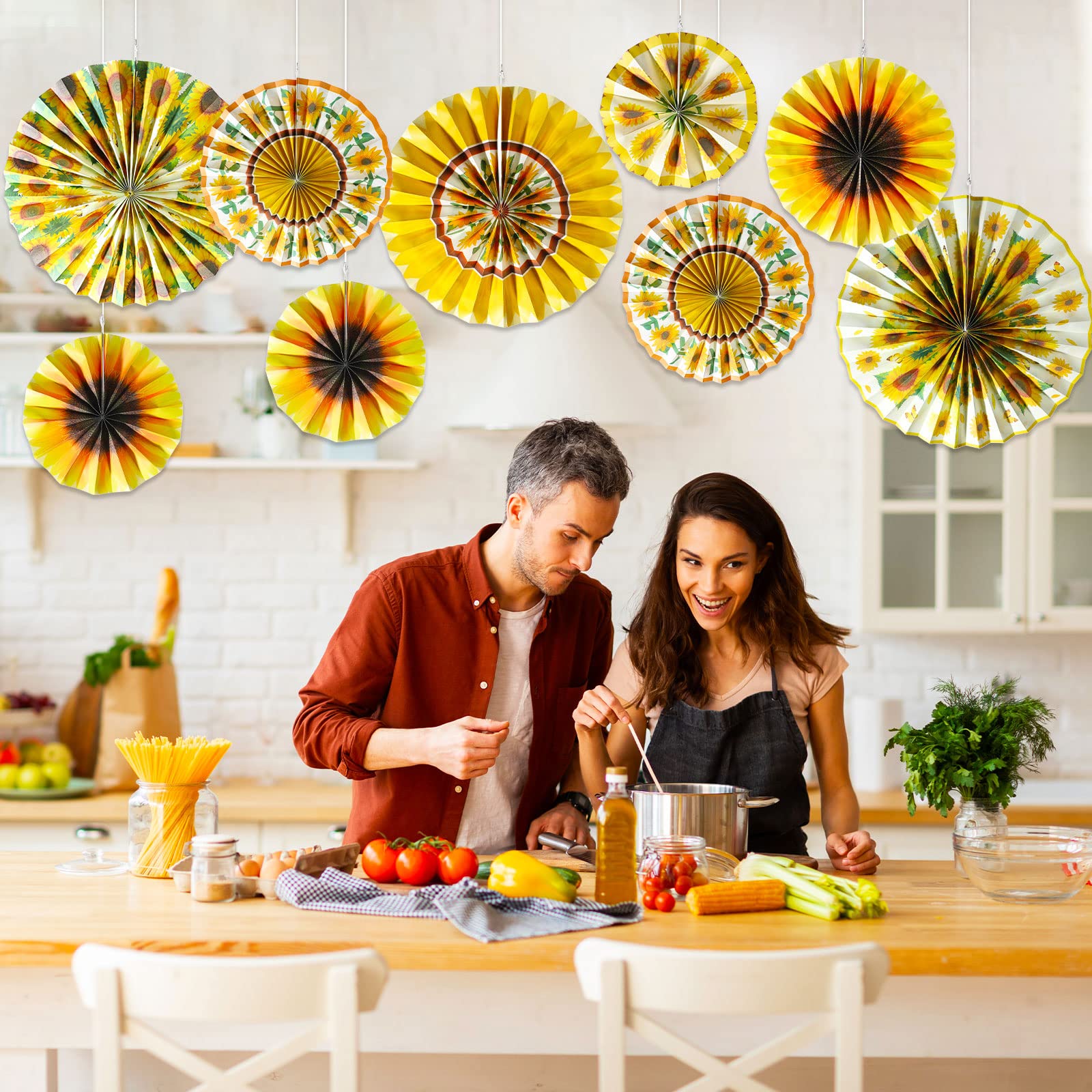 Bring Sonnenschein in deine Party! Diese 9 fröhlichen Sonnenblumen-Papierfächer verwandeln jeden Raum sofort in eine festliche Location. Einfach entfalten, aufhängen - und schon strahlt deine Feier in warmem Gelb! Perfekt für Geburtstage, Hochzeiten, Sommerfeste oder einfach um mal wieder gute Laune zu verbreiten. Das strapazierfähige Papier hält mehrere Partys durch und lässt sich platzsparend verstauen. Die Girlande zieht sofort alle Blicke auf sich und sorgt für diese besondere Wohlfühl-Atmosphäre. Egal ob als Tischdekoration, an der Wand oder von der Decke - diese Sonnenblumen machen einfach happy! Wiederverwendbar und immer wieder schön. Deine Gäste werden begeistert sein!