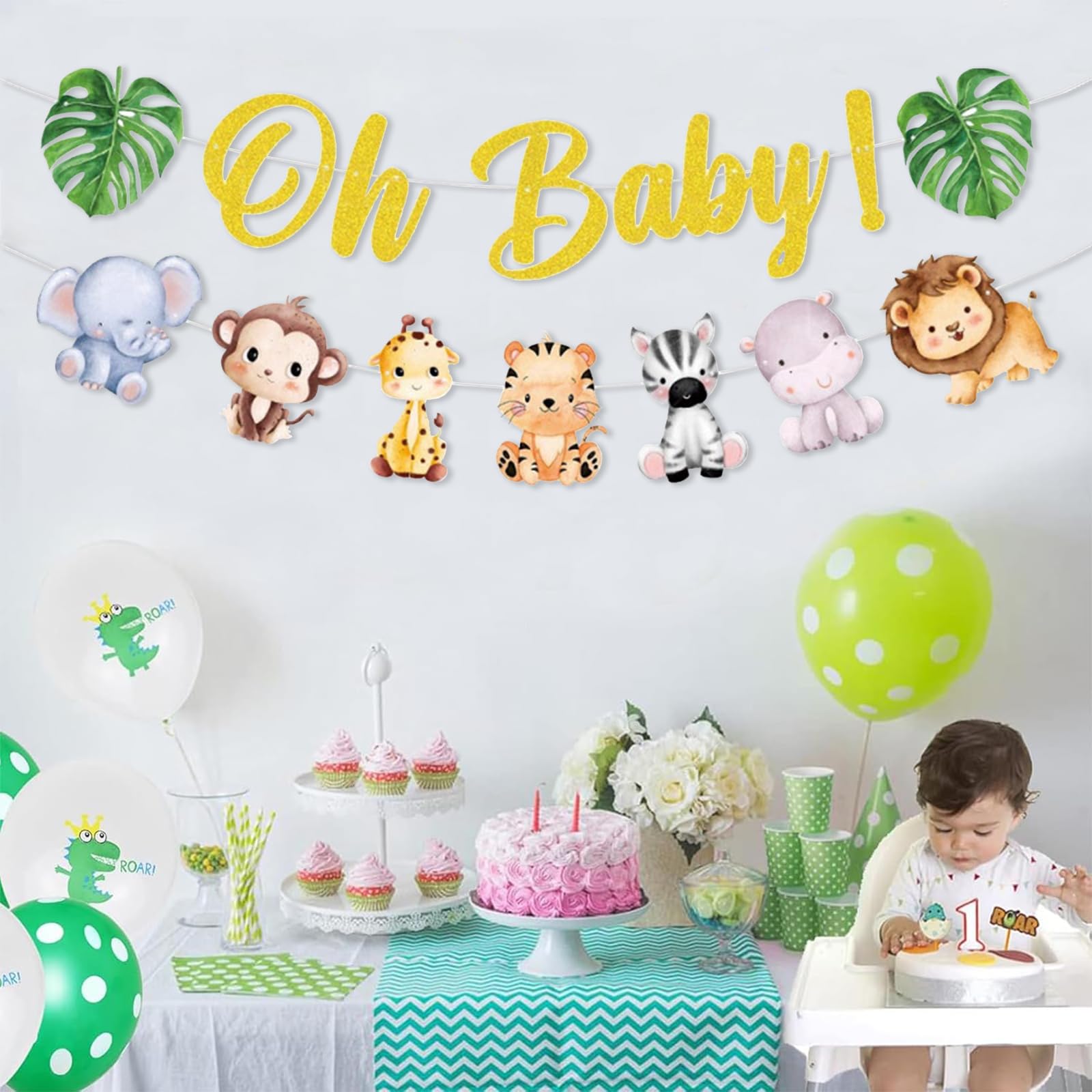 Süßeste Babyparty-Deko ever! Diese entzückende 'Oh Baby' Girlande mit Waldtier-Motiven verwandelt jede Feier in ein unvergessliches Erlebnis. Mit Elefanten, Löwen, Giraffen und Palmenblättern im niedlichen Design. Einfach die einzelnen Teile mit der beiliegenden Schnur verbinden und aufhängen - schon hast du einen wunderschönen Fotohintergrund! Perfekt für Babypartys, Gender Reveal Events oder zur Dekoration des Kinderzimmers. Das hochwertige Papier mit Laserschnitt sieht nicht nur toll aus, sondern ist auch langlebig und wiederverwendbar. Ob über dem Geschenketisch, am Kamin oder an der Wand - diese Girlande sorgt für strahlende Gesichter! Besonders praktisch: Das Design ist geschlechtsneutral und passt sowohl für Jungen als auch Mädchen. Mach die Ankunft deines Babys zu einem besonderen Event! Einfach montieren, aufhängen und die festliche Stimmung genießen. Deine Gäste werden begeistert sein!