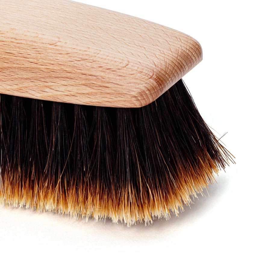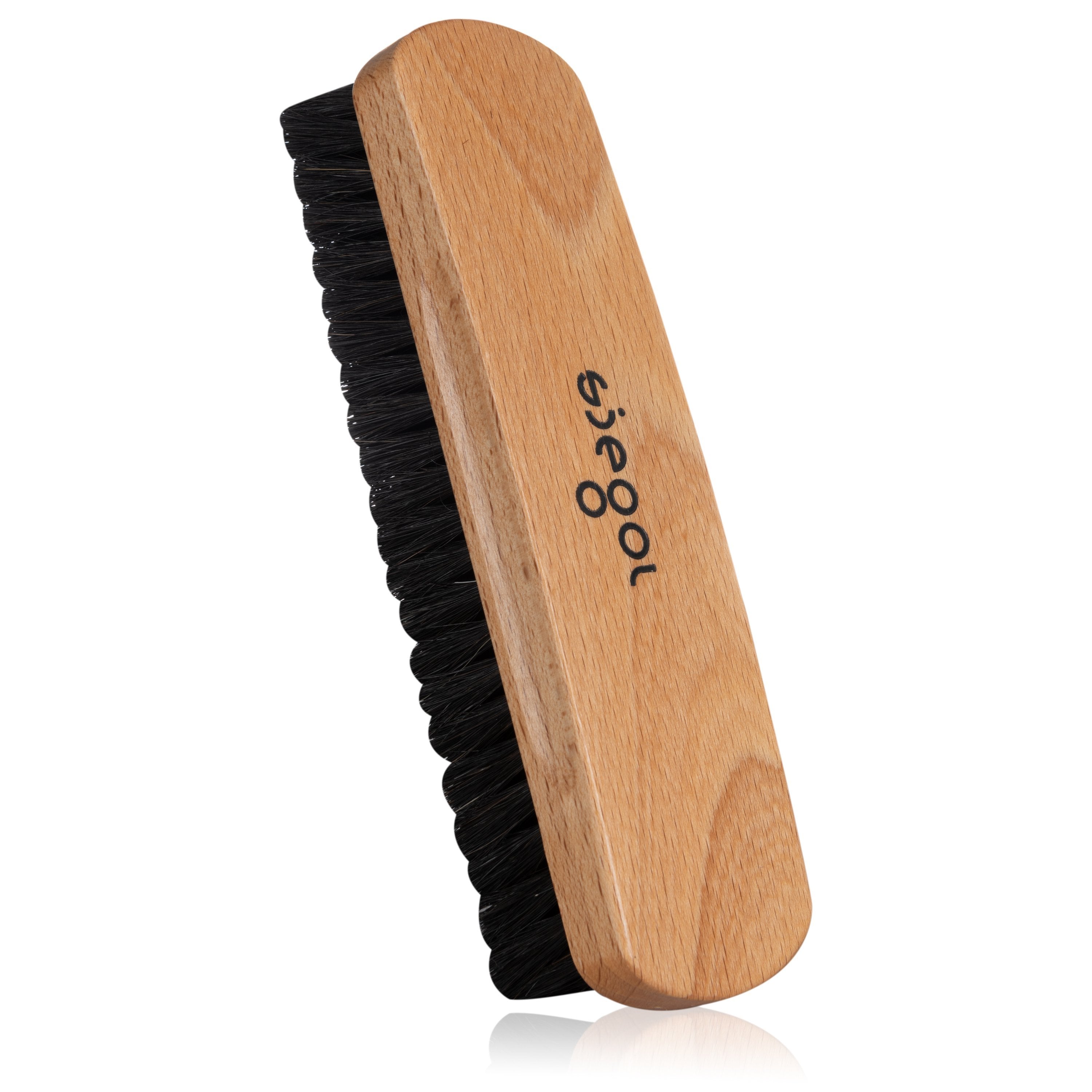 Für den perfekten Glanz auf deinen Schuhen! Die TelMo Bürste aus 100% schwarzem Rosshaar bringt deine Lederschuhe zum Strahlen. Mit dem geschwungenen Holzgriff liegt sie super in der Hand, und die seitlichen Griffkehlen sorgen für perfekten Halt. Maße: 170x53mm - nicht zu groß, nicht zu klein. Einfach über die Schuhe bürsten und schon glänzt das Leder wie neu. Ohne lästige Verpackung, direkt einsatzbereit. Die goldene Prägung gibt ihr das gewisse Etwas - nicht nur praktisch, sondern auch ein hübscher Anblick im Schuhregal.