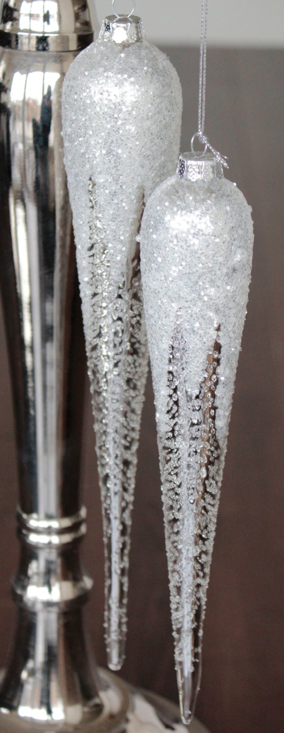 5x Eiszapfen Glas-Anhänger - Handgemachte Weihnachtsdeko 10-18cm