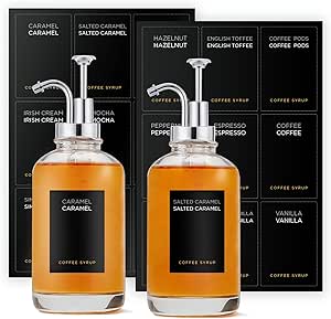 Bring Bar-Feeling in deine Küche! Dieses elegante Sirup-Spender Set besteht aus zwei 500ml Glasflaschen mit praktischen Pumpen, die genau die richtige Menge Sirup abgeben - etwa 2ml pro Druck. Die goldfarbenen Pumpenköpfe sehen nicht nur edel aus, sondern schließen die Flaschen auch staub- und insektendicht ab. Mit dem beiliegenden Trichter füllst du die Flaschen ganz einfach ohne Kleckern. Die 36 wasserdichten Aufkleber helfen dir, verschiedene Sirupsorten zu kennzeichnen. Aber die Flaschen können viel mehr als nur Kaffeesirup aufbewahren! Perfekt für Sojasauce, Olivenöl, Cocktail-Zutaten oder sogar als Seifenspender. Das Set kommt komplett mit einer schicken Holzpalette, auf der beide Flaschen ordentlich Platz finden. Ob für deine Home-Bar, die Kaffee-Ecke oder als Geschenk für Kaffee-Liebhaber - dieses Set macht überall eine gute Figur. Einfach befüllen, aufstellen und professionell dosieren - so einfach kann Barista-Lifestyle sein!