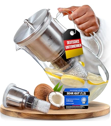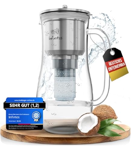 Platzsparendes Design passt in jeden Kühlschrank. Filtert bis zu 1,8 Liter auf einmal - genug für die ganze Familie. Genieße jeden Tag frisches, reines Wasser ohne lästige Kalkgeschmack. Dein Körper wird's dir danken!