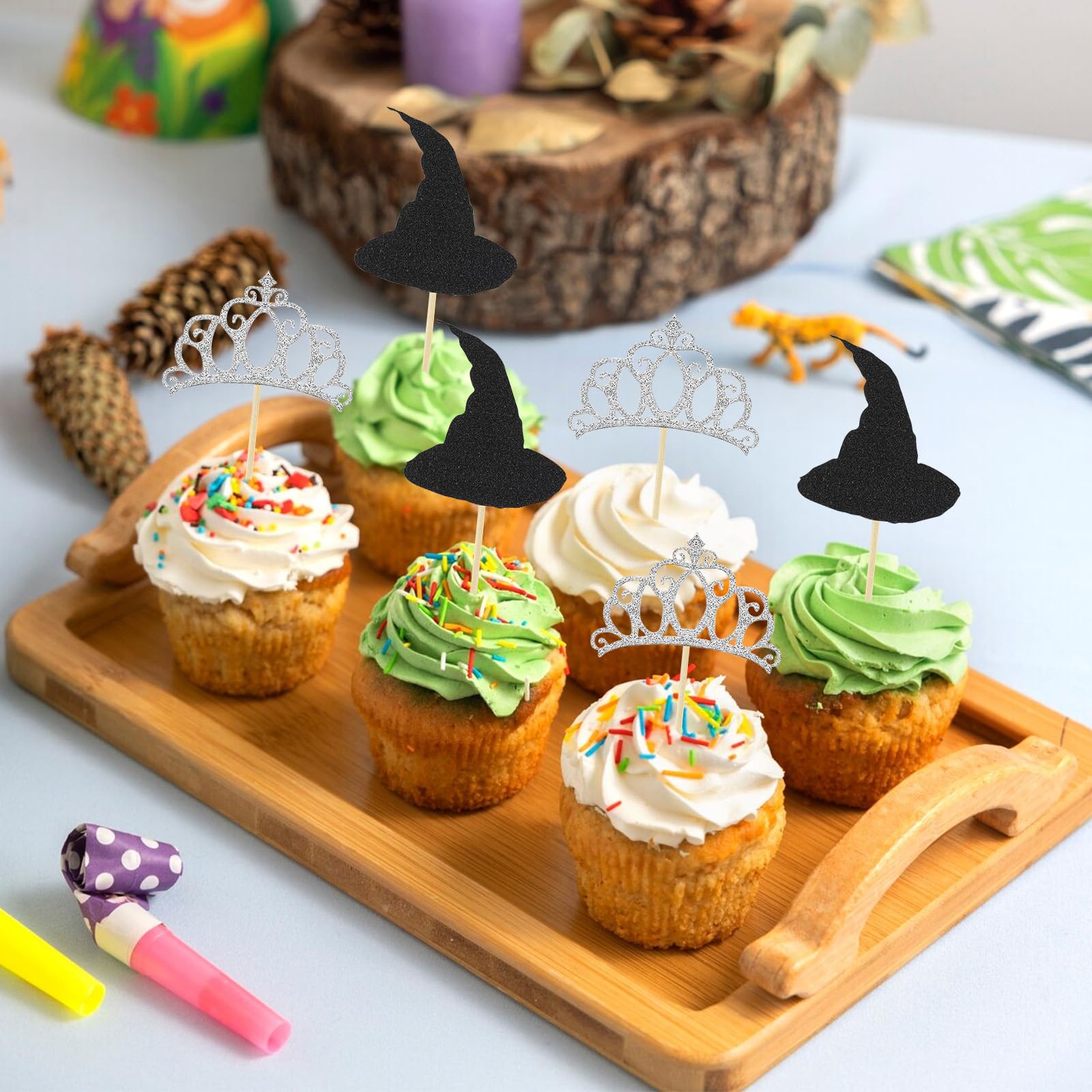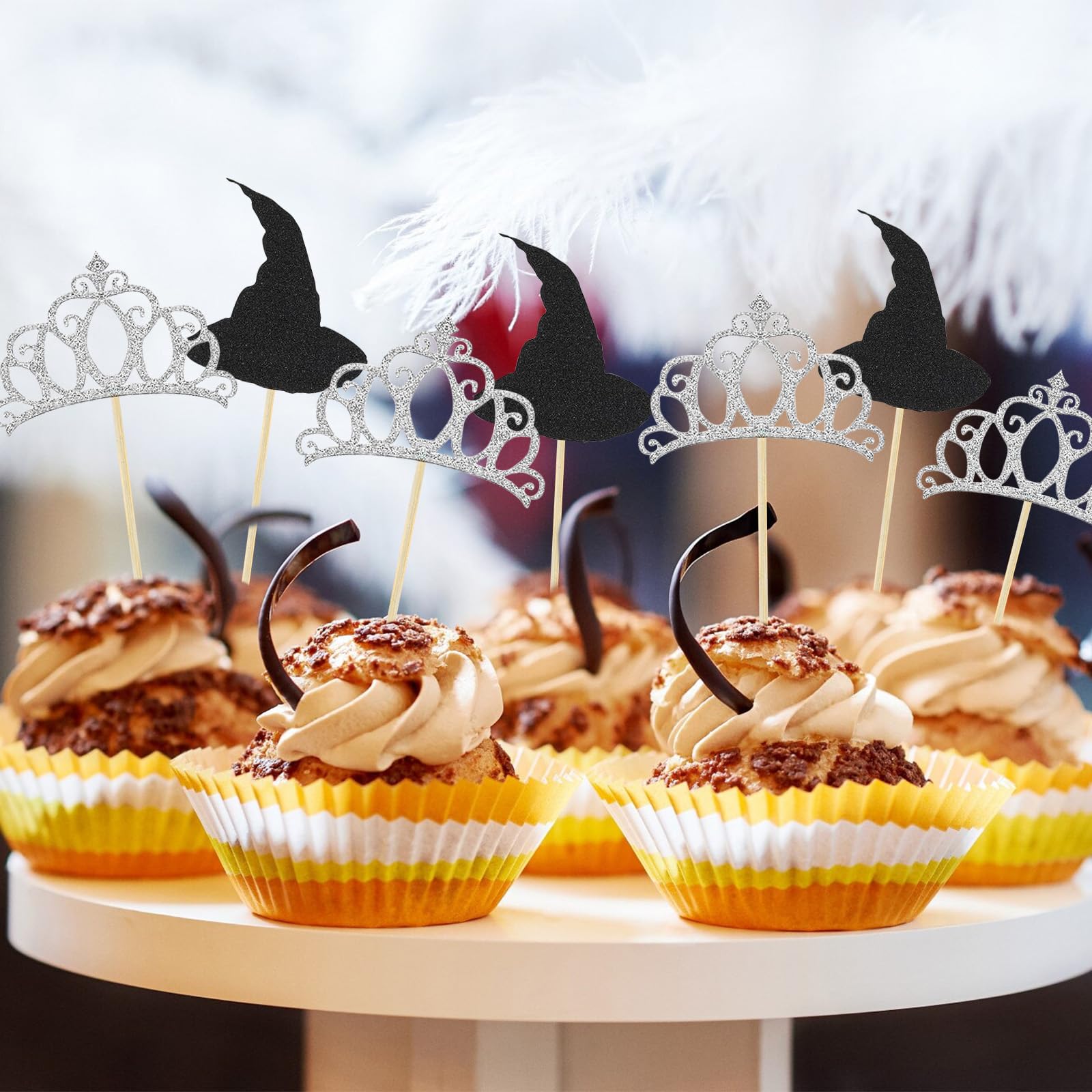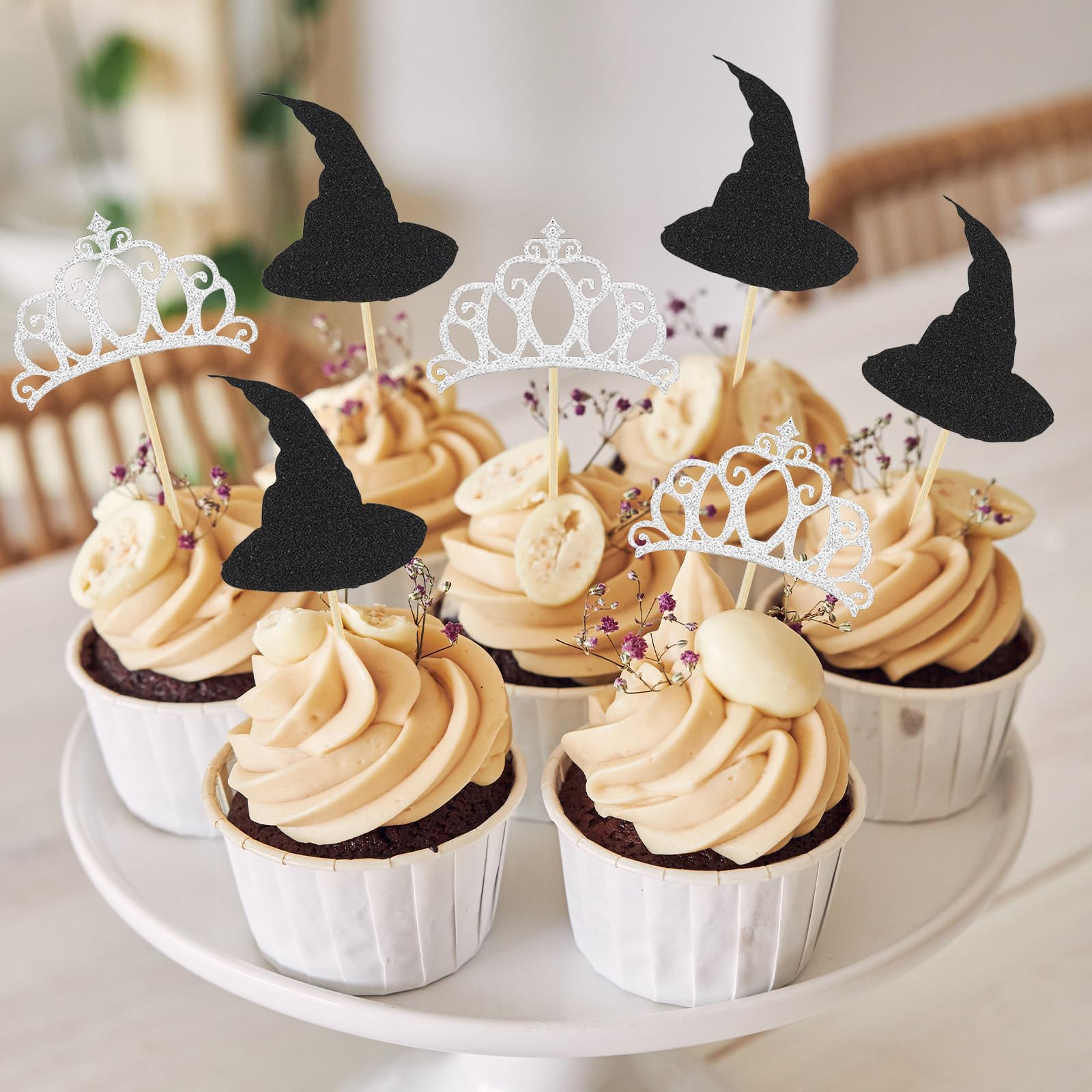 Perfekte Grusel-Stimmung für deine Halloween-Party! Dieses süße Hexen-Deko-Set macht aus deinen Kuchen echte Hingucker.\\n\\n🎃 PRODUKTDETAILS:\\n- 24 Stück Hexen-Deko in 6 verschiedenen Designs\\n- Material: Hochwertiger Karton - wiederverwendbar\\n- Fertig montiert - einfach in Cupcakes stecken\\n- Für Kuchen, Torten, Eis und Desserts\\n\\n👻 ANWENDUNG:\\n- Halloween-Partys und Grusel-Feiern\\n- Kindergeburtstage mit Horror-Thema\\n- Gartenpartys und Themen-Events\\n- Cupcake-Dekoration und Torten-Verzierung\\n\\n✅ PRAKTISCHE VORTEILE:\\n- Kein Zusammenbau nötig - sofort einsatzbereit\\n- Einfach in Cupcakes oder Kuchen stecken\\n- Höhe individuell anpassbar\\n- Macht jede Party zum Highlight\\n\\nWICHTIG: Nur zur Dekoration - nicht in Ofen oder Mikrowelle geben!\\n\\nEinfach in die Cupcakes stecken und dich über die tolle Wirkung freuen. Perfect für alle, die ihre Halloween-Party aufpeppen wollen - ob für Kinder oder Erwachsene!