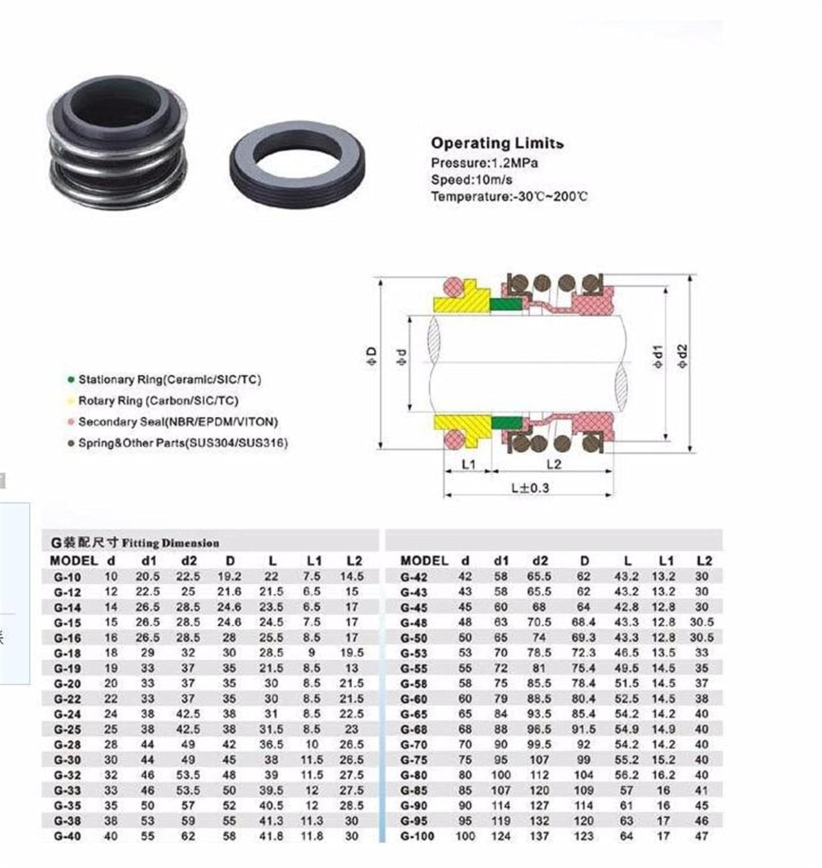 • Gleitringdichtung Viton 28mm | Bis 250°C Hitze Beständig | Für Wasserpumpen & Kreiselpumpen | Korrosionsresistent