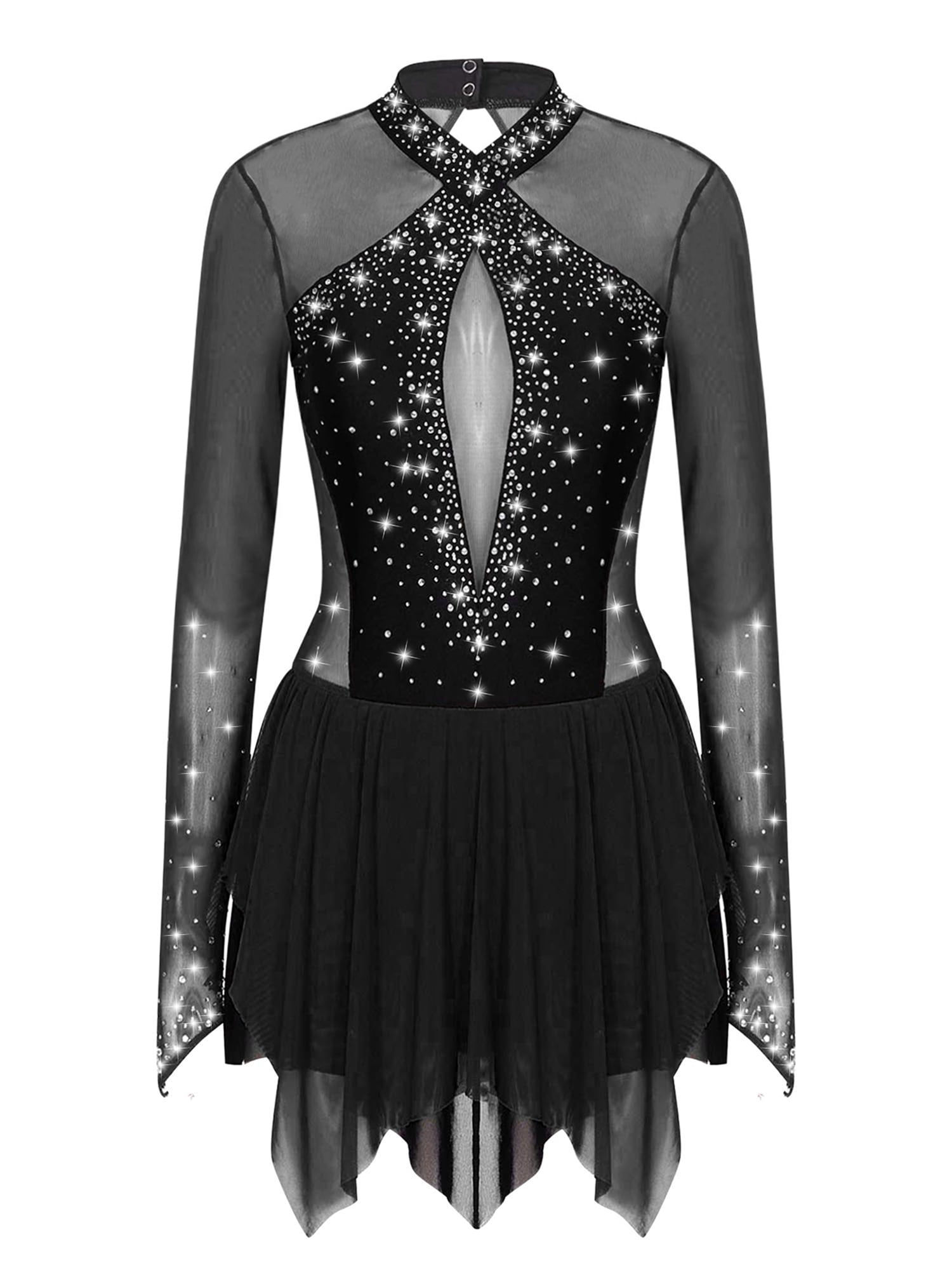 Dieses Eiskunstlaufkleid von Freebily ist einfach traumhaft! Langarm, aus transparentem Mesh mit funkelnden Strass-Steinen. 45% Polyester, 40% Nylon, 15% Strass - liegt weich auf der Haut. Mit unsichtbarem Reißverschluss hinten - leicht an- und auszuziehen. Integrierter Slip - für völlige Bewegungsfreiheit. Zwei-lagiger Rock - fließt super schön. Fingerlöcher an den Ärmeln - alles bleibt an Ort. In Größen S-XXL verfügbar - für jede Figur. Perfekt für Eiskunstlauf, rhythmische Gymnastik, Ballett, Tanzauftritte. Macht jede Bewegung elegant! Qualität ist hochwertig, verarbeitet mit Liebe zum Detail. Einfach bestellen und auf der Bühne glänzen!