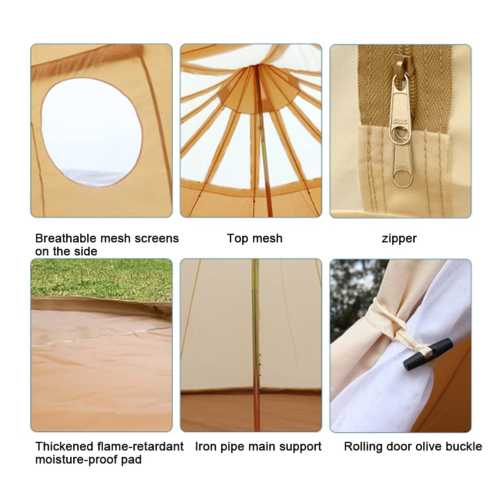 Das Oberteil ist frostsicher bis -40°C, der Boden aus 540g PVC. Mit 12 großen und 12 kleinen Erdnägeln plus Windleinen super stabil. Gute Belüftung durch Mesh-Fenster, Kaminöffnung inklusive. Perfekt für Familienfeiern, Festivals, Camping oder einfach als gemütlicher Rückzugsort in der Natur!