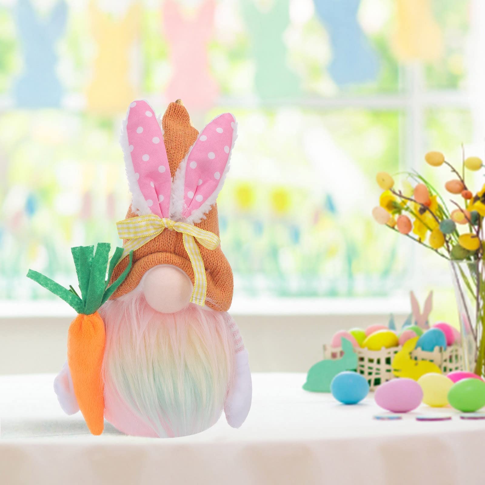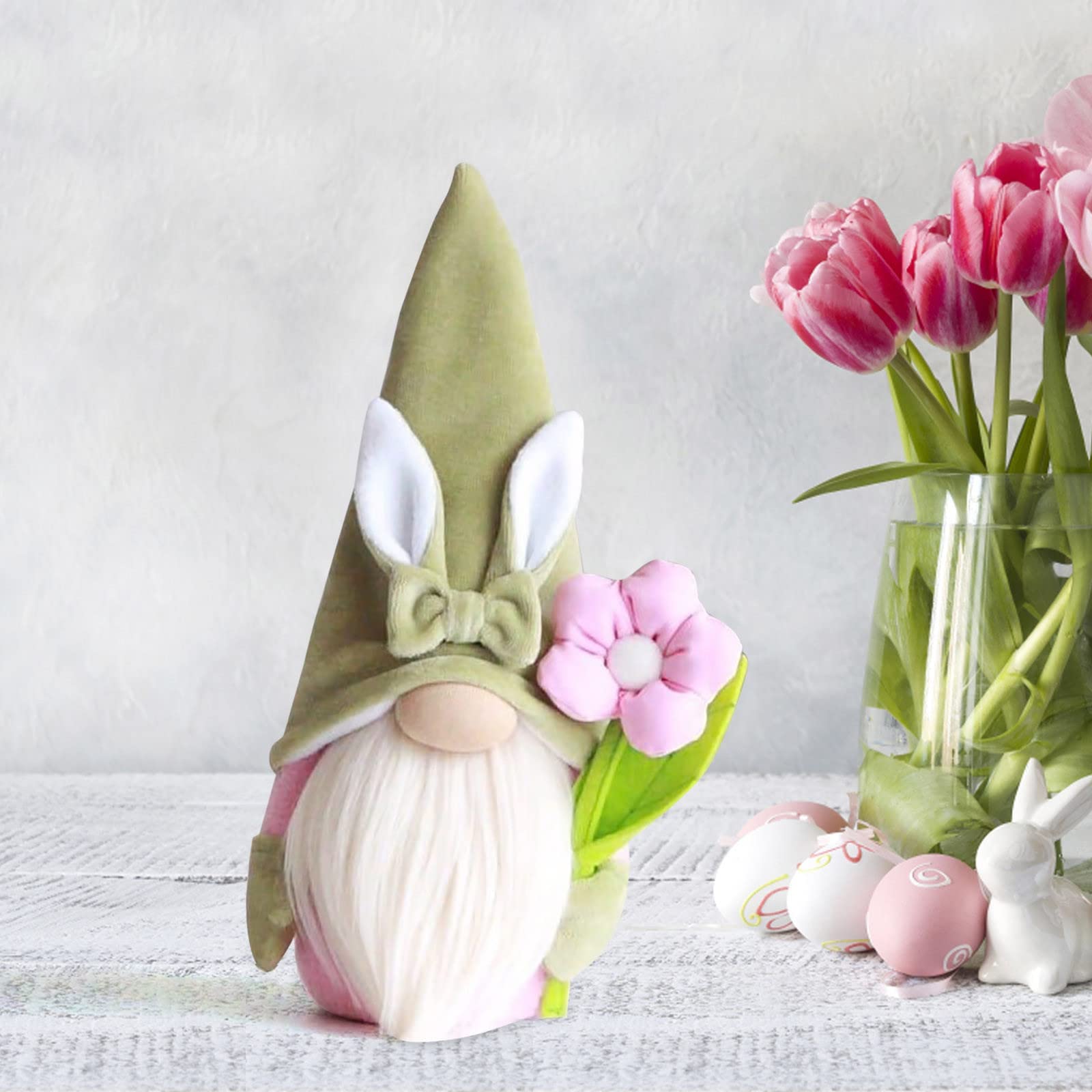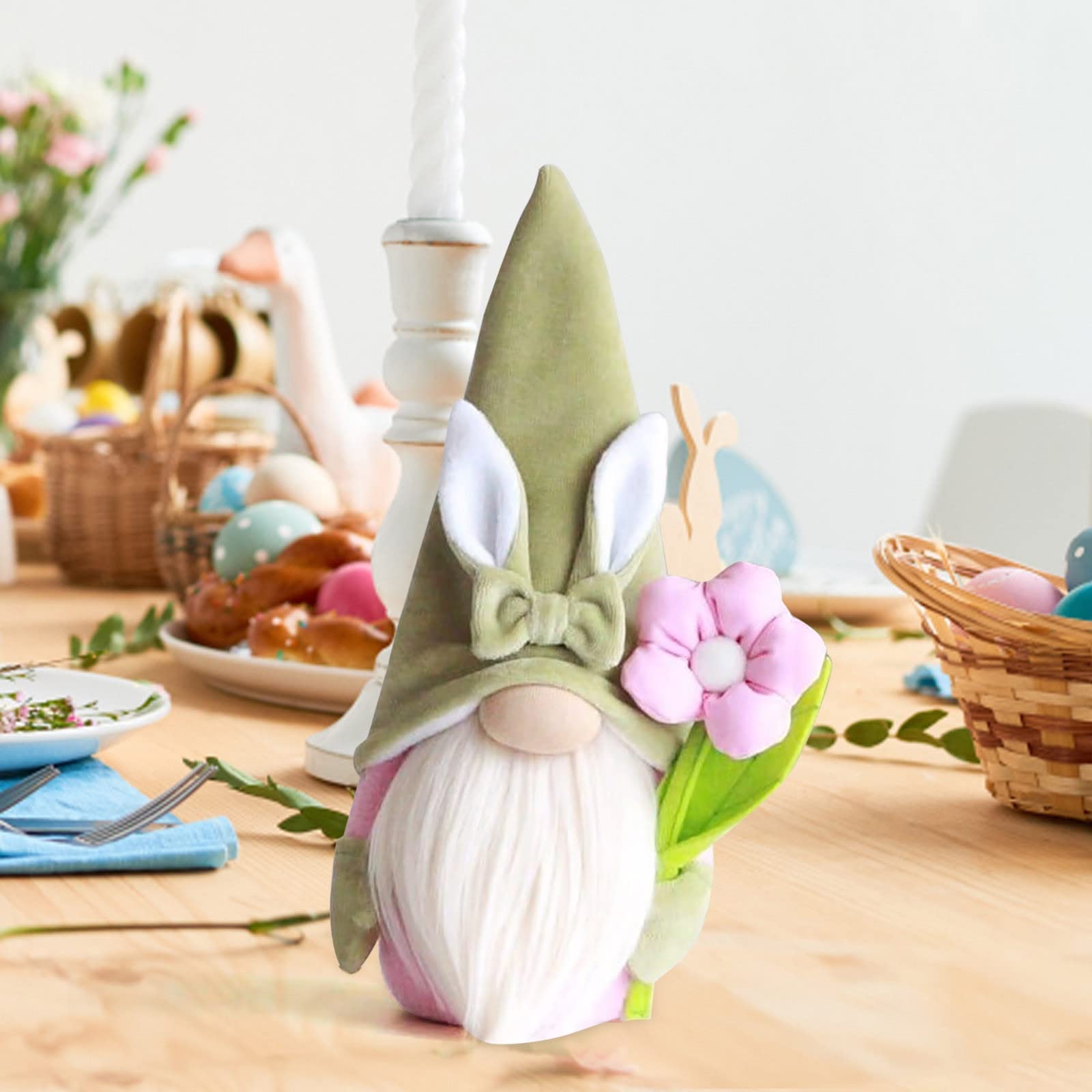Diese niedlichen Oster-Wichtel mit Hasenohren bringen frühlingshafte Stimmung in dein Zuhause! Hergestellt aus weichem Vliesstoff und Plüsch, sind die Figuren besonders kuschelig und hautfreundlich. Jeder Gnome ist mit Watte gefüllt und fühlt sich wunderbar weich an - absolut ungiftig und sicher für Kinder. Die grün-gelbe Farbkombination passt perfekt zum Osterfest und verbreitet sofort Frühlingsgefühle. In der Folklore gelten Gnome als Beschützer des Hauses und bringen Glück - diese süßen Gesellen sind also nicht nur Deko, sondern auch kleine Glücksbringer! Perfekt für die Oster-Tischdekoration, zum Verzieren von Fensterbänken oder als frühlingshafte Wohnaccessoires. Ob drinnen oder draußen - die Figuren schaffen überall eine festliche Atmosphäre. Auch als Ostergeschenk für Freunde, Familie oder Kinder ideal. Die handgemachte Optik verleiht jedem Raum eine gemütliche, skandinavische Note. Einfach aufstellen und sich an der fröhlichen Osterstimmung erfreuen! Diese charmanten Wichtel werden sicher zum Gesprächsthema bei deiner Osterfeier.