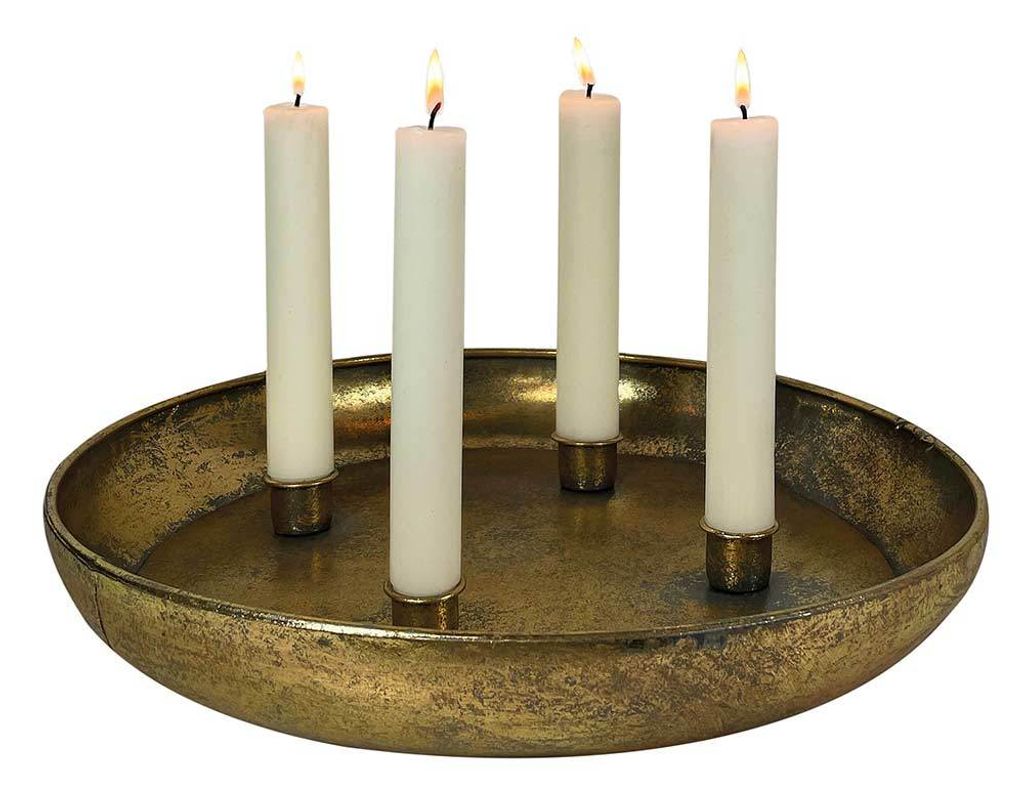 Bring Weihnachtsstil in dein Zuhause! Dieser goldene Adventskranz aus Metall ist der perfekte Rahmen für deine individuelle Adventsdekoration. Mit 36cm Durchmesser hat er genau die richtige Größe für den Esstisch oder die Kommode. Platz für vier Kerzen bis 7cm Durchmesser - jetzt musst du nur noch deine Lieblingskerzen aussuchen und nach Herzenslust dekorieren! Ob mit Tannenzweigen, Beeren, Zimtstangen oder bunten Kugeln - deiner Kreativität sind keine Grenzen gesetzt. Der Kranz ist schön stabil (750g) und kommt ohne Deko, sodass du ihn genau nach deinem Geschmack gestalten kannst. Perfect für die gemütliche Vorweihnachtszeit!