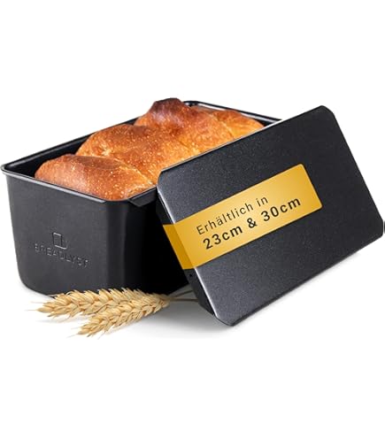 Perfektes Toastbrot ganz einfach! Diese Brotform aus Kohlenstoffstael mit praktischem Deckel backt dir gleichmäßiges Brot wie vom Bäcker. Maße: 14x12,2x11,2cm - ideal für Standard-Toasts. Antihaft-Beschichtung - das Brot löst sich super leicht. Mit Luftlöchern für perfekte Kruste und Belüftung. Goldfarben und robust - hält ewig. Einfach reinigen und immer wieder verwenden. Perfekt für Brot-Anfänger und Back-Profis! Einfach Teig rein, Deckel drauf und genießen!