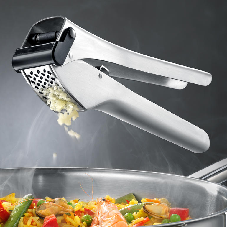 Der Alleskönner für deine Küche! Diese Knoblauchpresse aus 18/8 Edelstahl (Lebensmittelqualität) macht nicht nur Knoblauch klein, sondern presst auch Ingwer und öffnet Dosen. In schickem Gold, das gut aussieht und rostfrei ist. Einfache Wipp-Bedienung, super zu reinigen. Spart Zeit und Nerven in der Küche. Perfekt für Tisch, Küche oder Restaurant. Ein praktisches Tool, das du nicht mehr missen willst. Einfach, clever und sieht dabei noch gut aus!