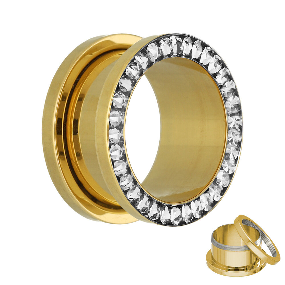 Taffstyle Titan Tunnel Gold Mit Kristall - Flesh Plug 10mm Durchmesser