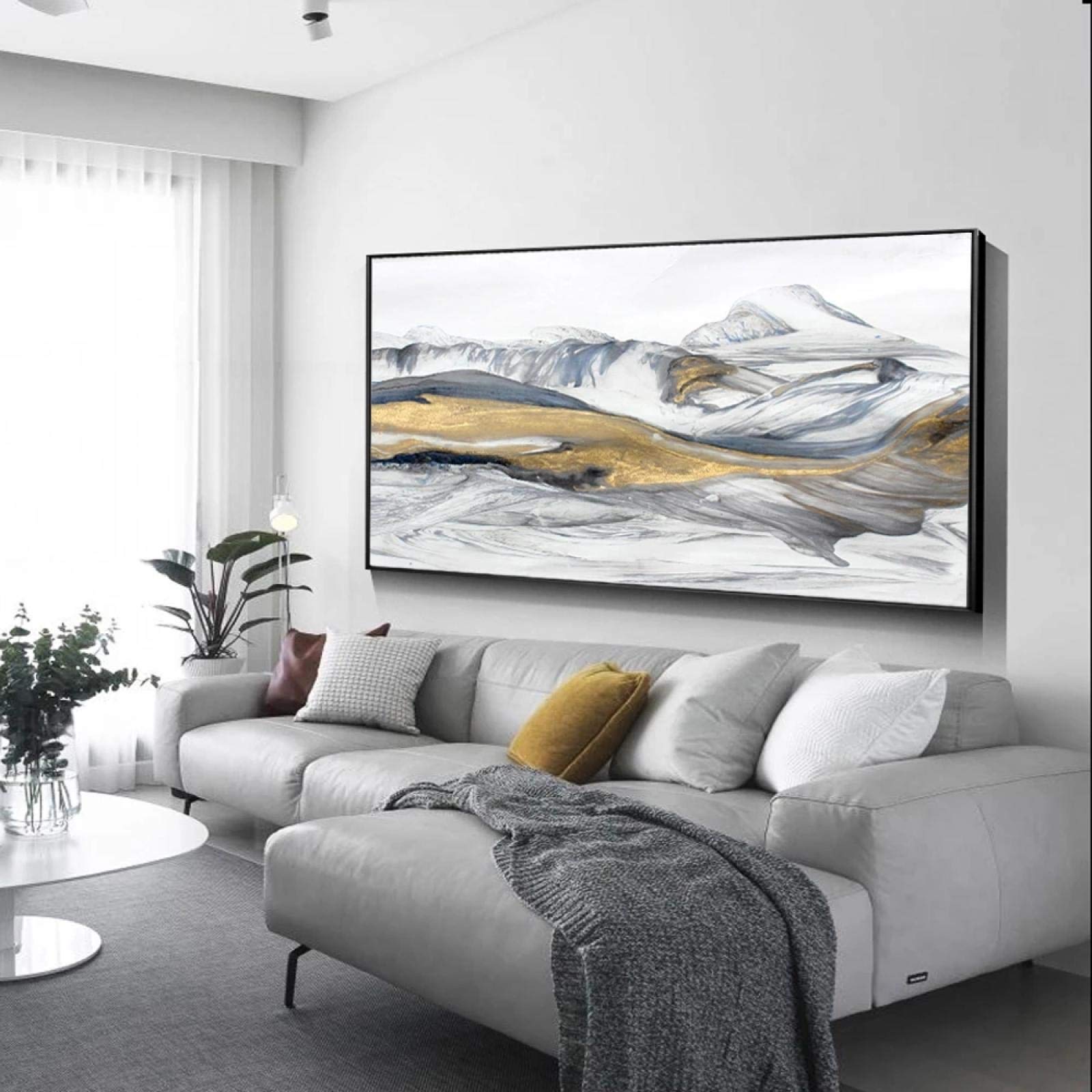 • Jianghu Art Leinwandbild 'Goldene Berge' - 60x130cm Mit Rahmen Für Wohnzimmer