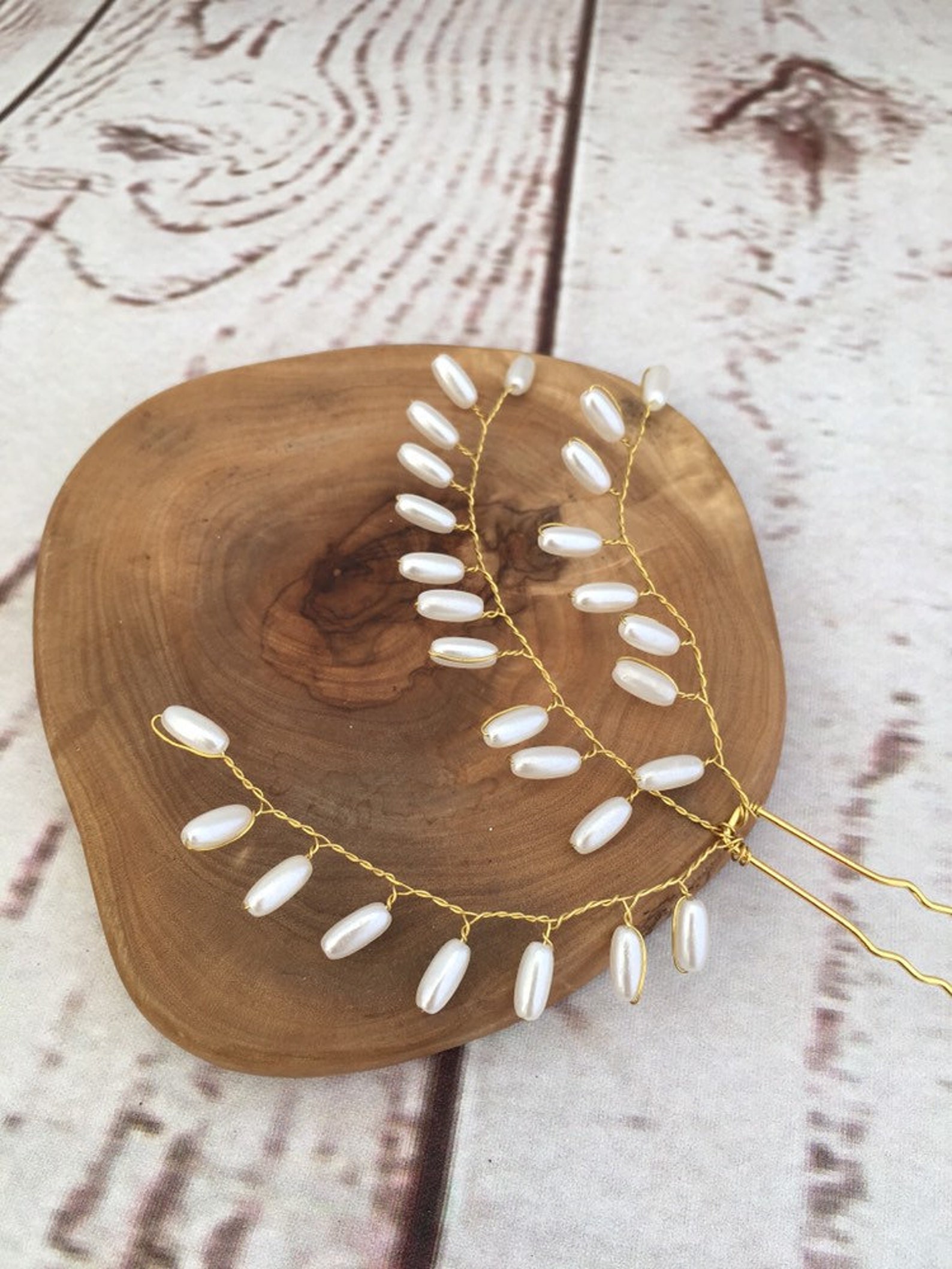 • 6x Goldfarbene Haarnadeln Mit Gelben Perlen - Brautschmuck Haarschmuck Set