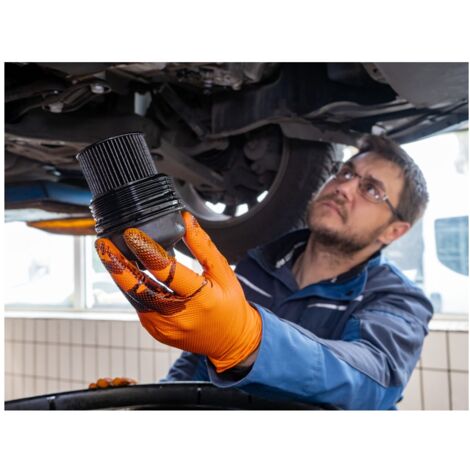 Sicherheit, die man sieht! Diese orangenen ViGOR Nitril-Handschuhe in Größe M bieten zuverlässigen Schutz bei Arbeiten mit Öl, Fett, Chemikalien oder scharfkantigen Gegenständen. Die auffällige Farbe sorgt für gute Sichtbarkeit - besonders wichtig in dunklen Arbeitsumgebungen.
