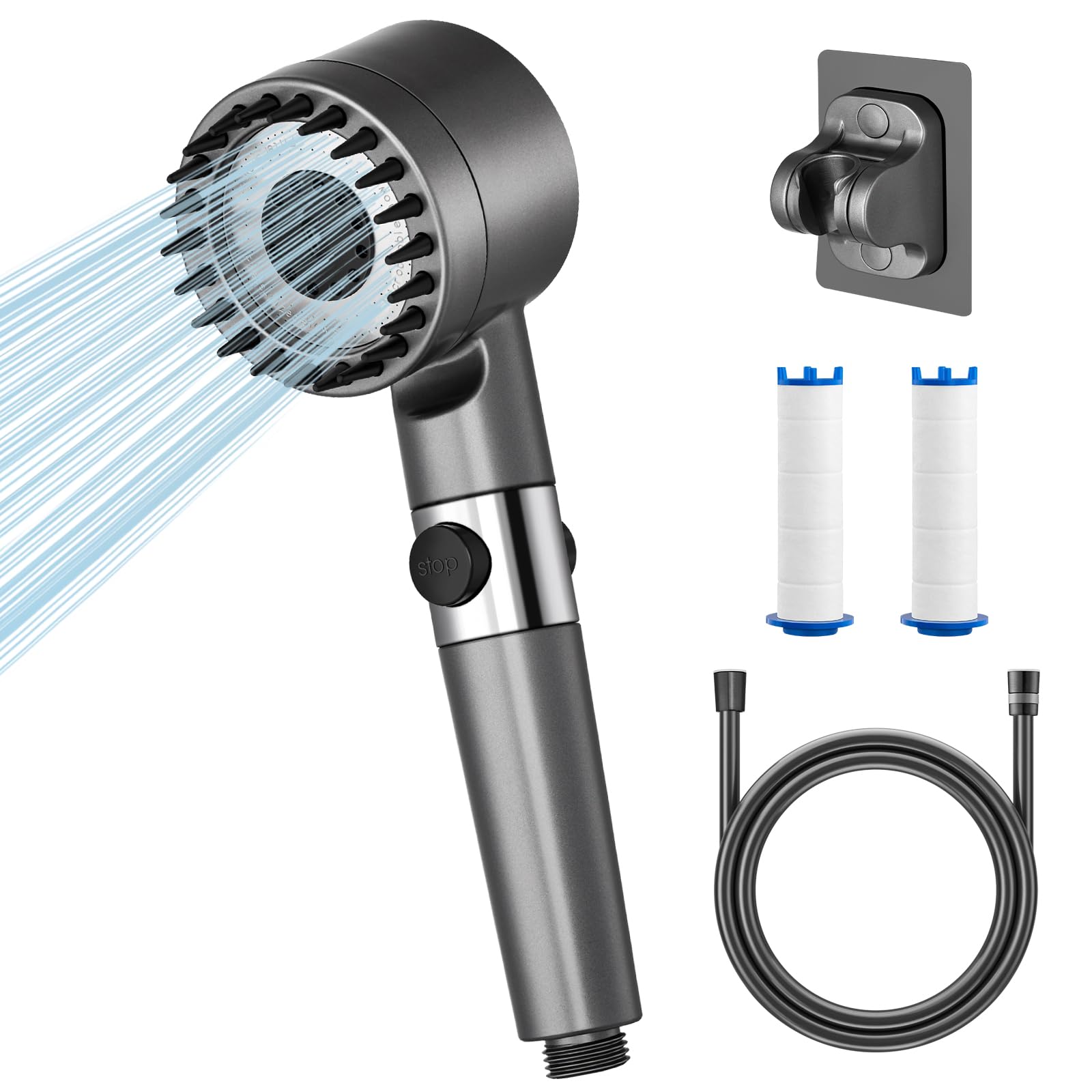 Boah, dieser Duschkopf mit Filter ist einfach eine Wohltat für dich und deine Haut! Stell dir vor: Du drehst das Wasser auf und genießt einen kräftigen, belebenden Strahl - aber ohne Chlor und Schwermetalle! Der Duschkopf hat drei Funktionen in einem: Einen sanften Regenschauer für entspanntes Duschen, eine belebende Massage-Funktion für müde Muskeln und einen Sprühmodus für die gründliche Reinigung. Das Besondere ist der eingebaute Filter, der Chlor, Kalk und Schwermetalle aus dem Wasser entfernt. So duschst du nicht nur erfrischt, sondern auch mit sauberem, gesundem Wasser! Der Wasserdruck wird verstärkt - selbst bei schwachem Leitungsdruck kommt ein kräftiger Strahl raus. Die Installation ist super einfach: Einfach den alten Duschkopf abschrauben, diesen drauf - fertig! Kein Werkzeug nötig! Aus hochwertigen Materialien gefertigt, ist der Duschkopf rostfrei und langlebig. Die graue Farbe sieht modern und edel aus. Einfach ein Upgrade für dein Badezimmer, das sich sofort bezahlt macht!