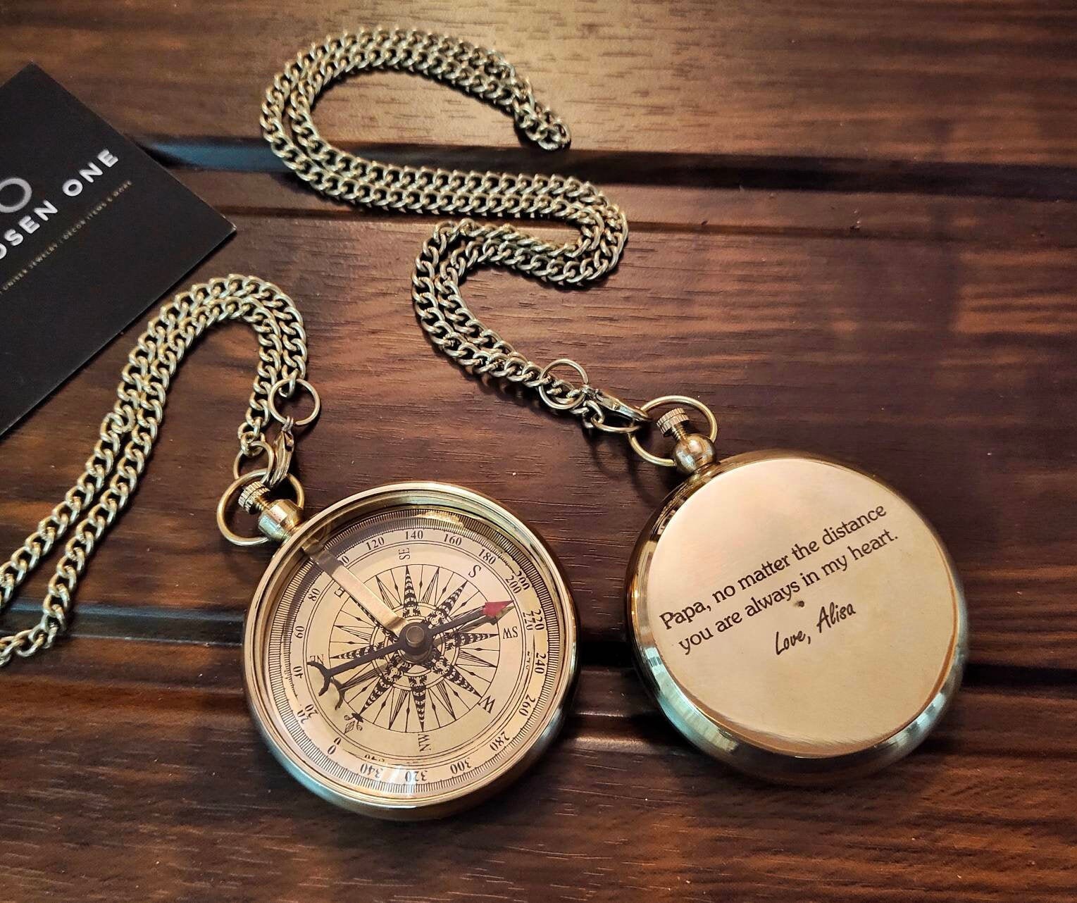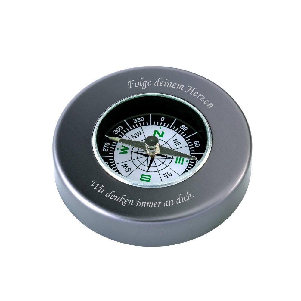 Suchst du ein besonderes Geschenk oder einen zuverlässigen Begleiter für Outdoor-Abenteuer? Dieser Kompass kann mit deinem persönlichen Text graviert werden - ob Name, Datum oder ein motivierender Spruch! Aus Messing gefertigt, entwickelt mit der Zeit eine coole Patina. Die Leuchtziffern helfen auch bei Dunkelheit bei der Orientierung. Mit der Metallschlaufe kannst du ihn einfach am Rucksack oder Schlüsselbund befestigen - so ist er immer griffbereit. Kompakt genug für jede Tasche, aber robust genug für echte Abenteuer. Perfekt für Wanderer, Camper, Angler oder einfach als täglicher Begleiter. Ob für deinen Sohn zur Graduierung, deinen Vater als stille Wertschätzung oder deinen Mann zum Jahrestag - dieses persönliche Geschenk hat echte Bedeutung. Einfach Norden finden und los geht's!