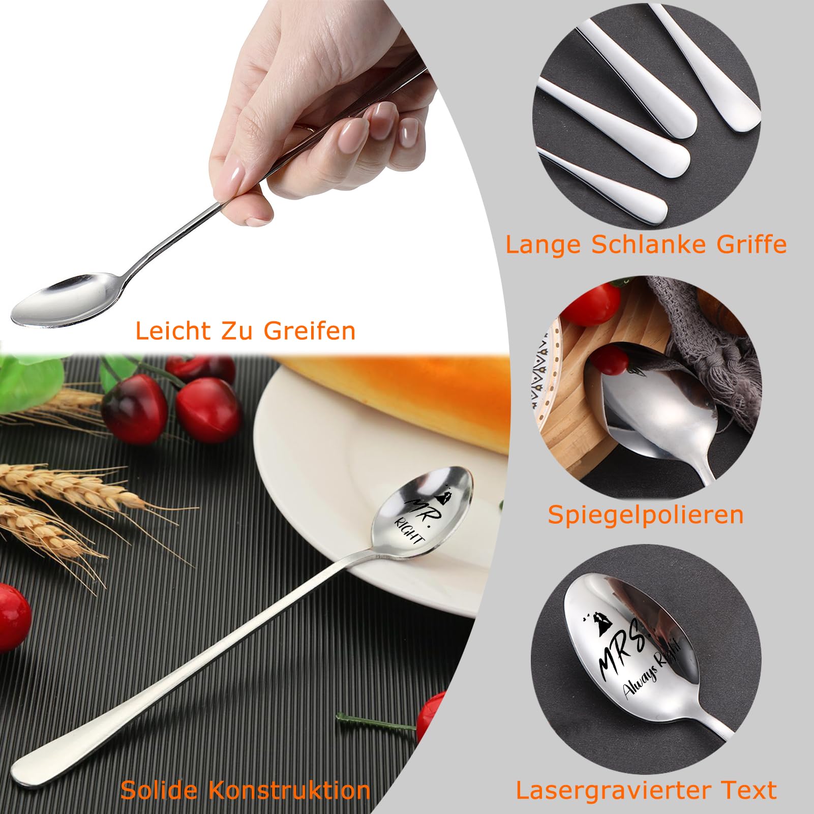 Mit der süßen Gravur \\\Mr Right Mrs Always Right\\\ - das bringt jeden zum Schmunzeln! Aus hochwertigem 304 Edelstahl, also rostfrei und spülmaschinengeeignet. Die Gravur bleibt auch nach häufigem Spülen super lesbar.
