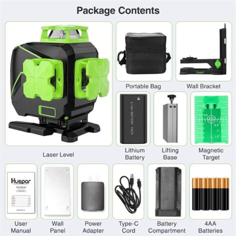 • Huepar 4D Green Laser - Selbstnivellierender Kreuzlinienlaser Mit Bluetooth
