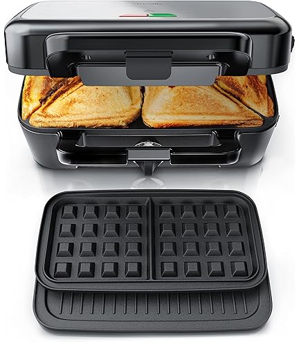 Boah, dieser GreenChef 3-in-1 Maker ist ja mal richtig praktisch! Damit kannst du Paninis, Waffeln UND Sandwiches machen - alles in einem Gerät! Die Platten haben ne gesunde Keramik-Antihaftbeschichtung komplett ohne PFAS - also super sicher und easy zu reinigen! Einfach abwischen oder in die Spülmaschine stecken! Die LED-Anzeige zeigt dir, wann's ready ist - grün bedeutet loslegen! Die cool-touch Griffe sind mega sicher und verriegeln beim Zuklappen! Super stabil steht das Teil auf der Arbeitsplatte, dank Gummifüßen! Ob für schnelle Snacks, Brunch oder Party - dieses Teil macht alles mit! In schickem Rosa sieht's dazu noch richtig gut aus in deiner Küche! Einfach Platten wechseln und zwischen den Funktionen switchen! Perfekt für Familien, Studenten oder alle, die gerne schnell was Leckeres machen! Einfach anschließen, aufheizen und loslegen! Deine Freunde werden beeindruckt sein!
