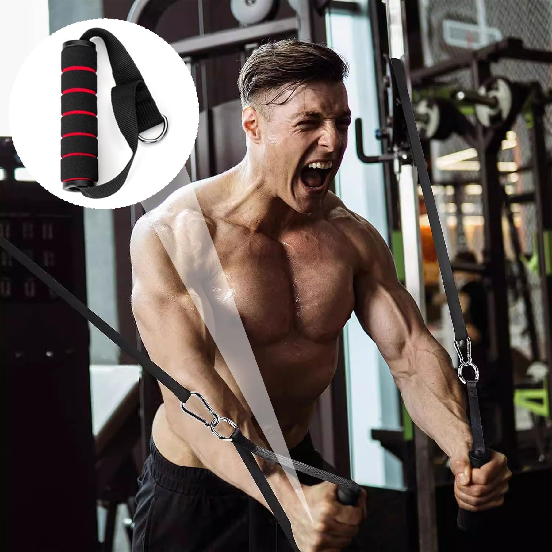 Besser trainieren mit den richtigen Griffen! Diese 2 Fitnessband-Griffe aus ABS-Material mit EVA-Schaum sind super bequem und rutschfest. Mit starken D-Ringen und Schnallen für sicheren Halt an Widerstandsbändern, Kabelmaschinen und Heimtrainern. Bis zu 260 kg belastbar - ideal für Trizeps-Übungen, Rudern, Pulldowns und mehr. Der ergonomische Griff verhindert Blasen und ist schweißabsorbierend. Inklusive Mesh-Tasche für unterwegs. Perfekt für Home-Gym oder Studio - steigere dein Training mit professionellem Zubehör!