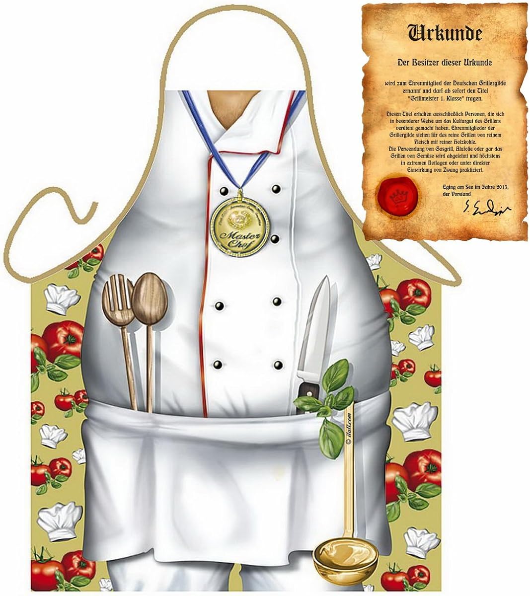 Alter, diese Grillschürze mit dem Aufdruck KOCHGOTT ist einfach der Hammer für jede Grillparty! Aus 100% Baumwolle - super angenehm zu tragen und bei 30°C waschbar. Die Einheitsgröße passt eigentlich jedem, ob Mann oder Frau. Mit praktischer Fronttasche für dein Grillwerkzeug und langen Bändern zum bequemen Umbinden. Wird übrigens in Baden-Württemberg hergestellt - deutsche Qualität halt! Perfekt als Geschenk für Grillfans oder einfach für dich selbst. Auf jeder Party ziehst du damit garantiert alle Blicke auf dich. Der Druck ist witzig und bleibt auch nach mehrmaligem Waschen super erhalten. Einfach anziehen und losgrillen! Damit wirst du zum unangefochtenen Grillmeister jeder Feier. Egal ob im Garten oder auf dem Balkon - mit dieser Schürze machst du immer ne gute Figur!