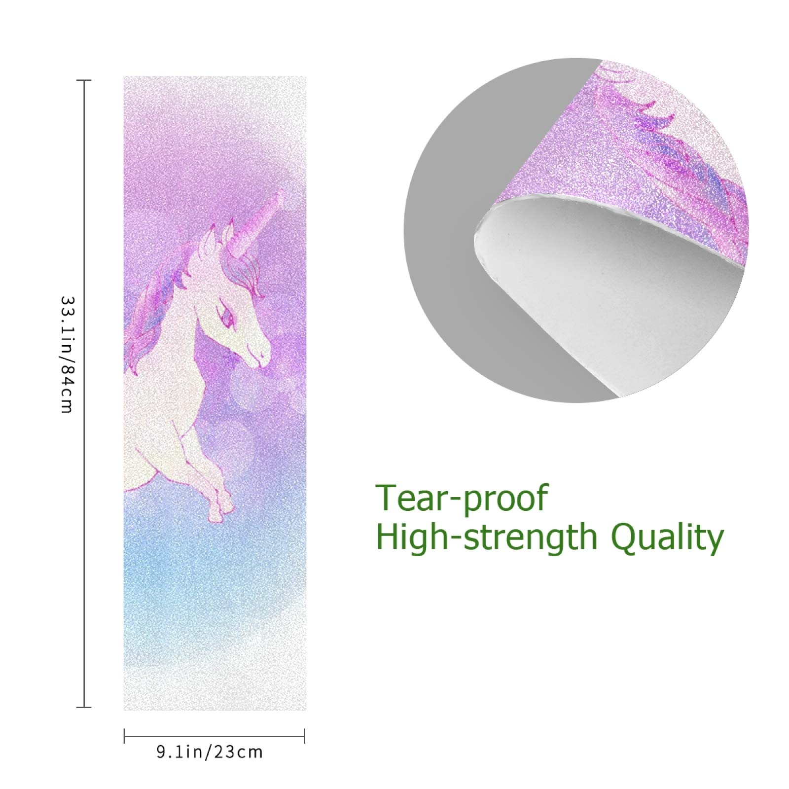 Bring dein Skateboard auf das nächste Level mit diesem ultra-coolen Regenbogen-Einhorn Griptape! Das lila Design mit Wolken und Einhörnern sieht nicht nur absolut awesome aus - es ist auch super funktionell. Hergestellt aus robustem Siliziumkarbid für maximalen Grip und lange Haltbarkeit. Die spezielle Perforierung verhindert lästige Blasen beim Aufkleben. Mit den Maßen 22,9 x 83,8 cm passt es auf die meisten Skateboards, Longboards und Scooter. Einfach zuschneiden, Schutzfolie abziehen und aufkleben - fertig ist dein personalisiertes Board! Das selbstklebende Material hält bombenfest, auch bei wilden Tricks und Stunts. Ob für Einsteiger oder Profis - mit diesem Griptape hast du nicht nur den besten Halt, sondern auch den stylischsten Deck in der Skatepark. Perfekt als Geschenk für Skateboard-Fans oder einfach mal was Neues für dein eigenes Board. Zeig allen, dass Style und Funktion keine Gegensätze sein müssen! Mach dein Board zum absoluten Hingucker - die anderen werden neidisch sein!