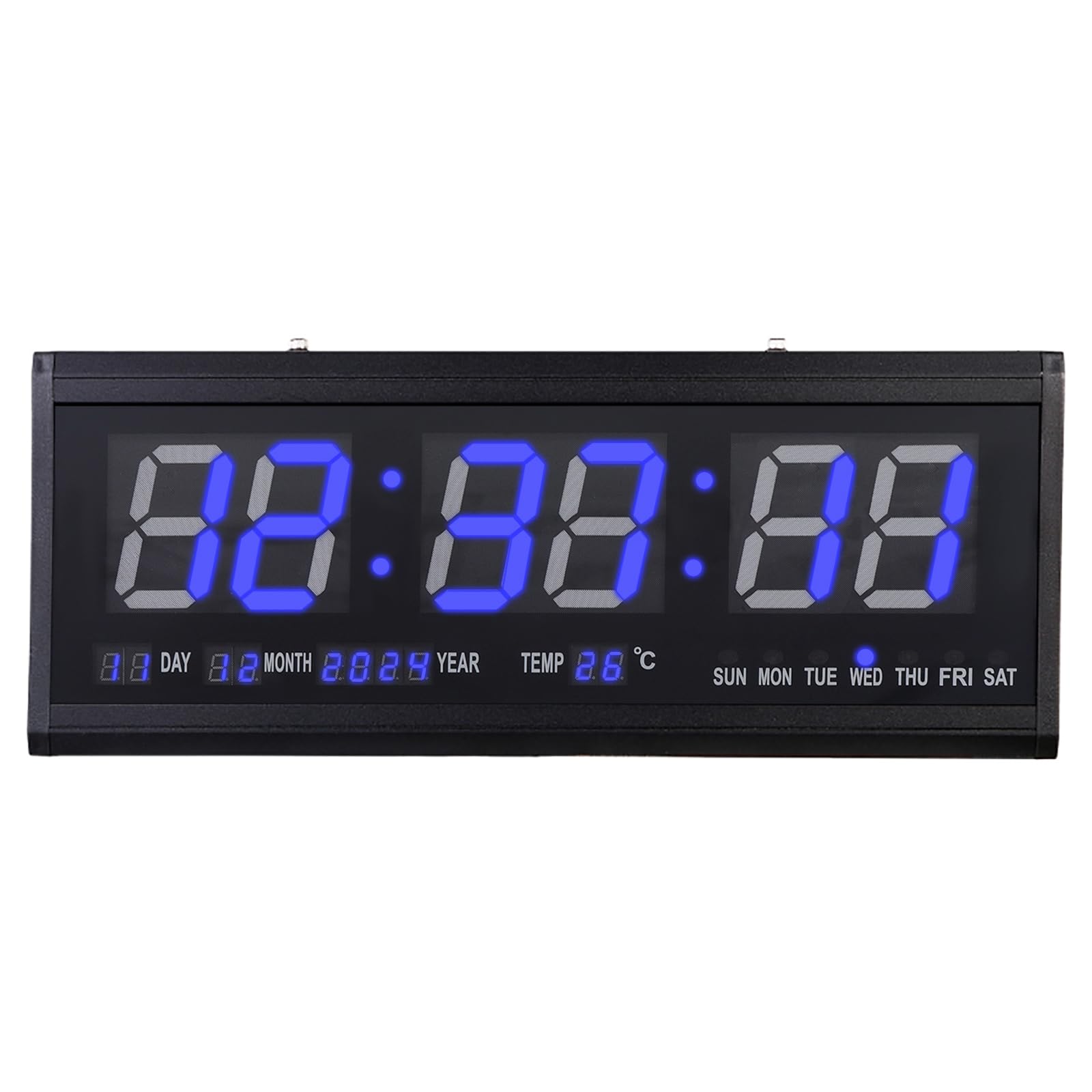 Diese digitale Wanduhr mit ihrem 20x20 cm großen Display ist ein echter Alleskönner für Zuhause oder Büro! Sie zeigt nicht nur die Uhrzeit mit Sekunden an, sondern auch das Datum, den Wochentag und die Temperatur - alles auf einen Blick. Perfekt für ältere Menschen oder alle, die eine gut lesbare Anzeige schätzen. Das elegante schwarze Design aus Aluminiumlegierung passt in jeden Raum und sieht dabei hochwertig aus. Besonders praktisch: Das doppelte Aufhängedesign sorgt für stabilen Halt an der Wand, aber du kannst die Uhr auch einfach auf den Schreibtisch stellen. Mit der integrierten CR2032 Knopfbatterie und Stummschaltfunktion störst du nachts niemanden. Einfach anschließen und loslegen - keine komplizierte Einrichtung nötig. Ideal fürs Wohnzimmer, Schlafzimmer, Büro oder Besprechungsräume. So verpasst du garantiert keinen Termin mehr!