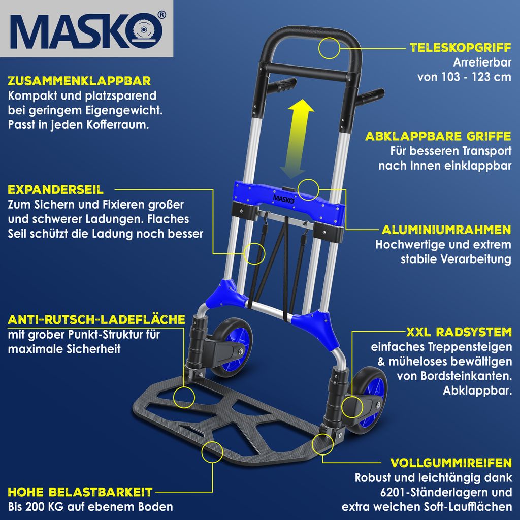 Mann, diese Sackkarre ist ja ein echtes Arbeitstier! Mit satten 150kg Tragkraft kannst du damit richtig schwere Sachen transportieren. Die zwei großen Vollgummiräder (25cm Durchmesser, 8,5cm breit) laufen super leise und geben perfekte Traktion - egal ob auf Stein, Beton oder Asphalt. Das klappbare Design ist genial: Nach Gebrauch einfach zusammenklappen und platzsparend verstauen. Höhenverstellbar passt sie für Benutzer jeder Größe. Der rutschfeste Griff gibt dir sicheren Halt, und die Anti-Rutsch-Plattform (31x30cm) sorgt dafür, dass nichts verrutscht. Inklusive 2 Spanngurten für zusätzliche Sicherheit! Die mehrfach verstärkten Streben und seitlichen Stützplatten machen sie super stabil. Perfekt für Umzüge, im Lager, in der Werkstatt oder zu Hause im Garten. Einfach aufklappen, beladen und los geht's - so einfach kann Transport sein!