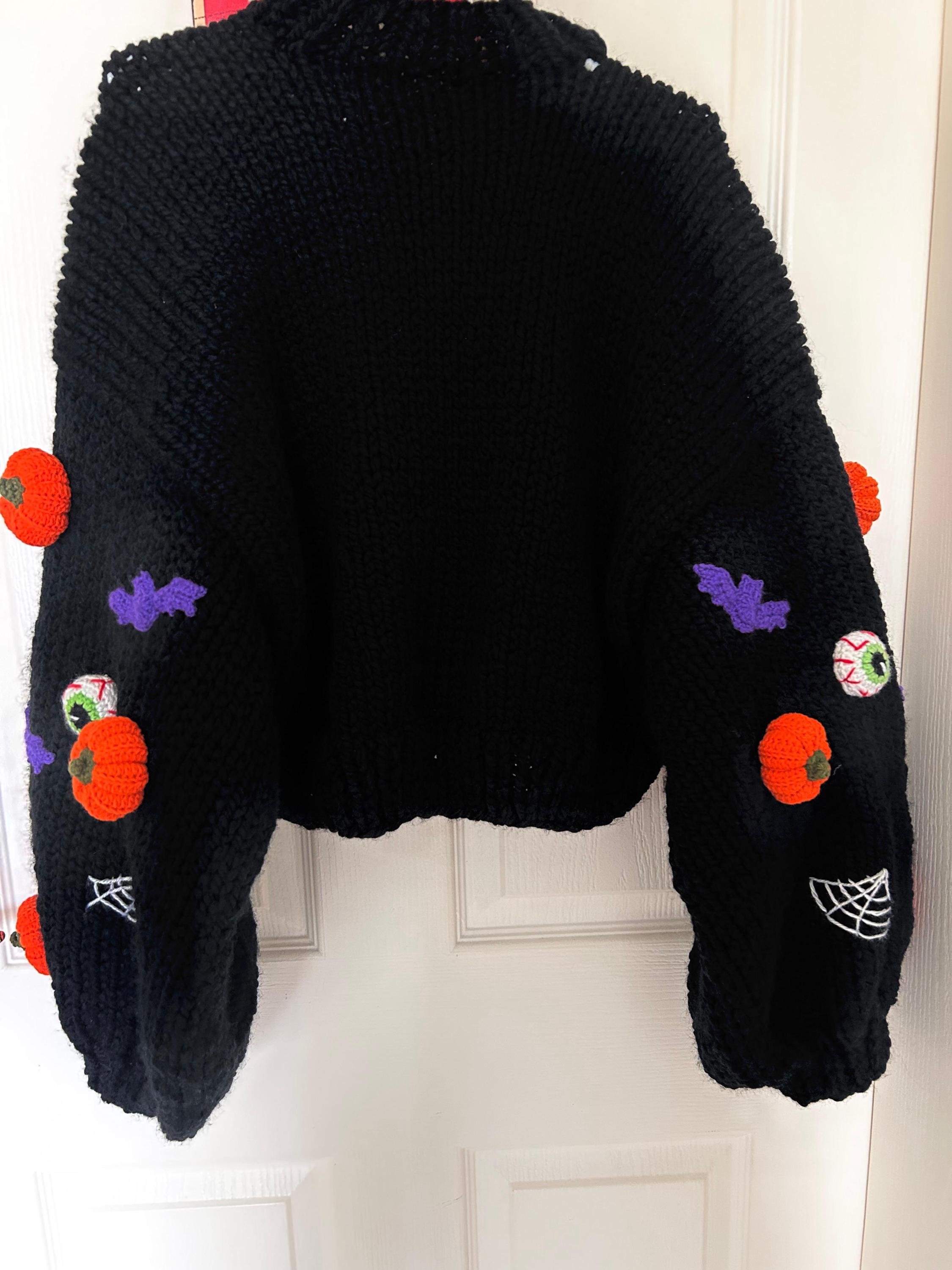 Perfekt für Halloween-Partys! Diese Strickjacke für Damen mit gruseligen Kürbis- und Geister-Motiven ist der absolute Hingucker. Langarm mit Knopfleiste - stylisch und praktisch. Auch in Übergrößen erhältlich - für jede Frau die passende Passform. Aus weichem Kunststoff-Material - angenehm zu tragen und pflegeleicht. Ideal für Halloween-Feste, Kostümpartys oder einfach um im Herbst Gruselstimmung zu verbreiten. Kombinierbar mit Jeans oder schwarzer Hose - schnell ein komplettes Halloween-Outfit. Macht auch als Geschenk für Halloween-Fans eine super Figur. Zeig deine gruselige Seite - aber dabei total bequem!