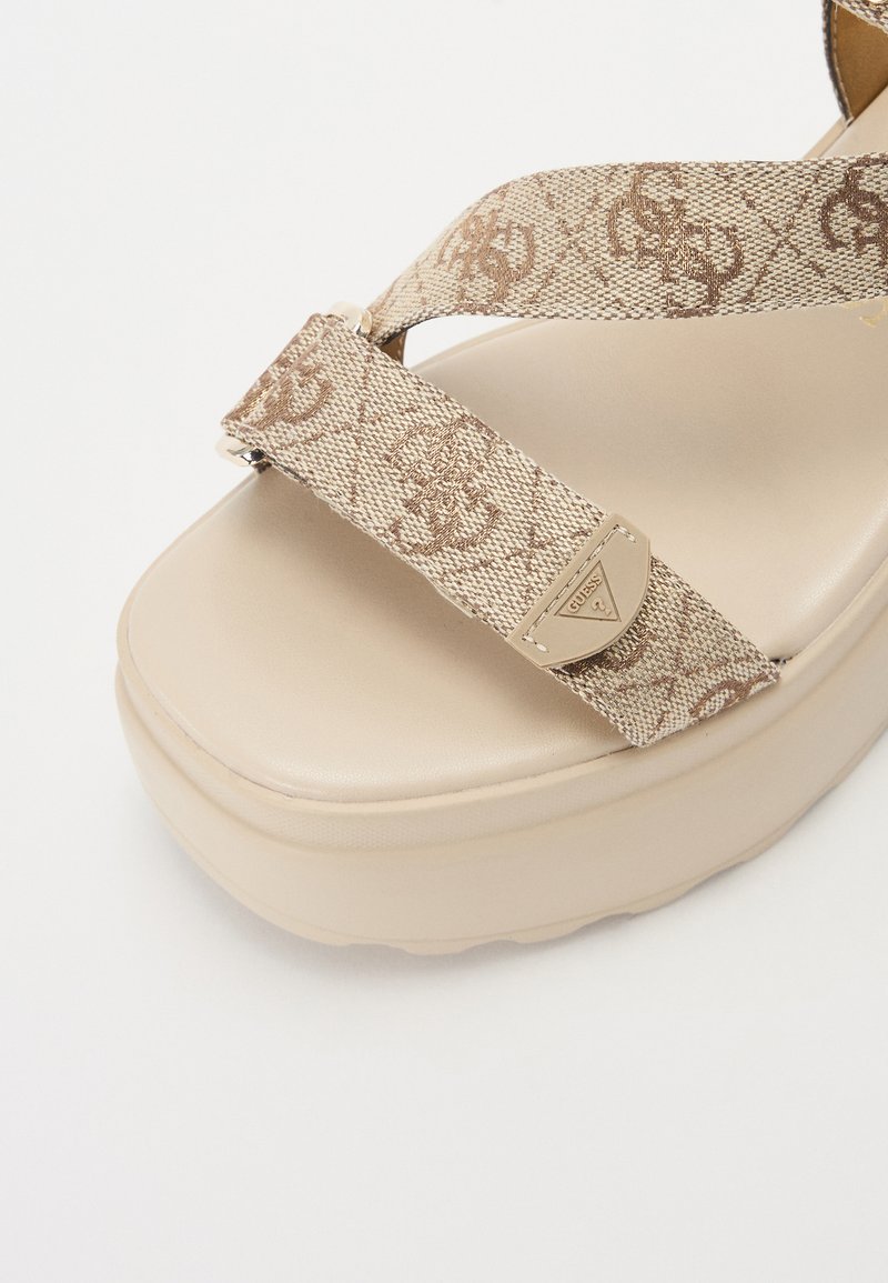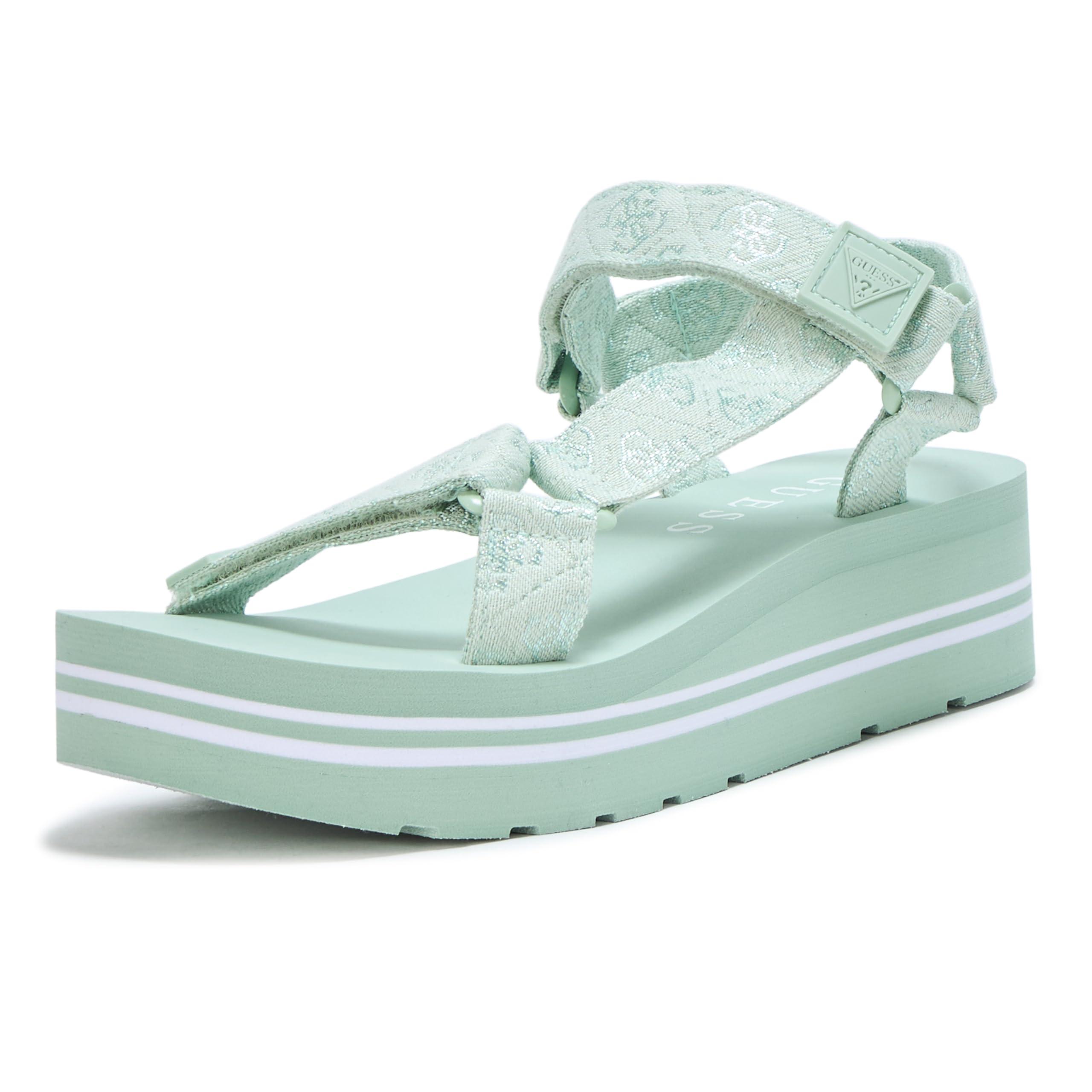 Sommer, Sonne, Guess Sandalen! Die Avin Keilsandale kombiniert lässigen Style mit totalem Tragekomfort. Das Obermaterial aus Stoff ist leicht und pflegeleicht, während der Klettverschluss für perfekten Halt sorgt. Mit 5,1 cm Keilabsatz gibst du deiner Silhouette etwas mehr Schwung, ohne auf Komfort zu verzichten. Die offene Zehenpartie lässt deine Füße atmen und das Synthetikfutter innen verhindert unangenehme Reibung. Die robuste Synthetiksohle gibt dir auf verschiedenen Untergründen sicheren Halt. Perfekt für Stadtbummel, Büro oder Restaurantbesuche - einfach an- und ausziehen und den Sommer genießen! Guess Qualität, die sich sehen lassen kann.