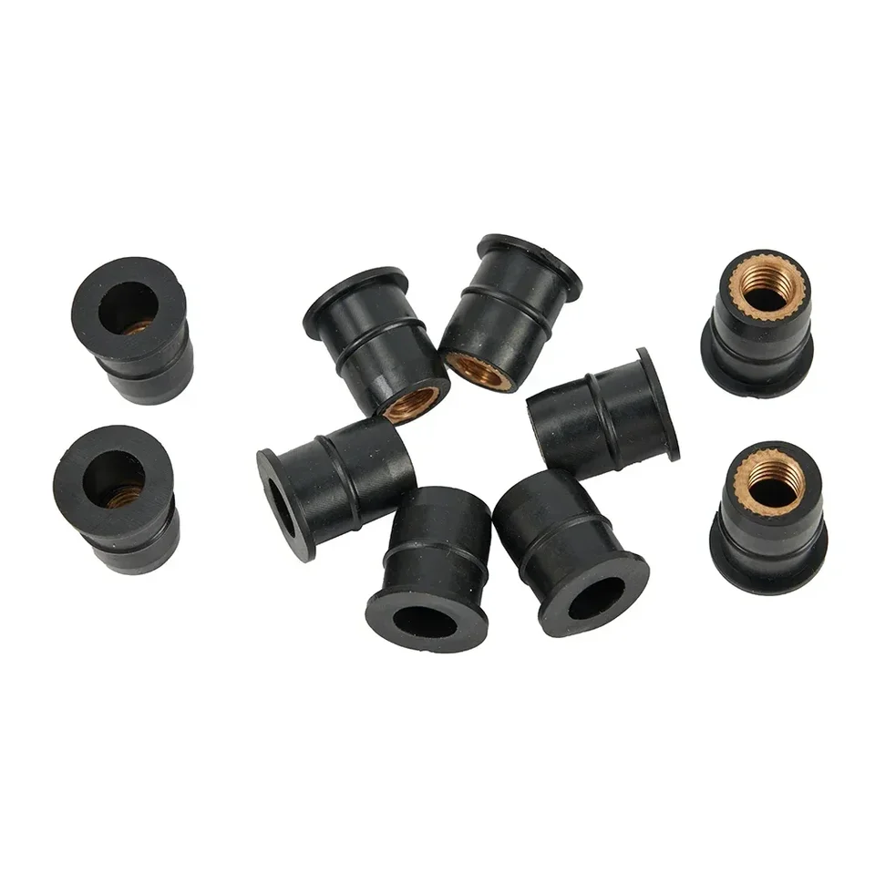 Perfekte Befestigung für empfindliche Materialien! Dieses Set mit 20 M5 Gummi Wellmuttern ist ideal für Motorradverkleidungen, Boote und Kanus. Die Muttern bestehen aus hochwertigem Neopren mit Messing-Einsatz - absolut wasserdicht und vibrationsdämpfend. Mit den Maßen 8,6mm Außendurchmesser und 5mm Innendurchmesser passen sie perfekt für Standard-Schrauben. Einfach in ein vorgebohrtes Loch stecken und mit einer Schraube festziehen - die Mutter dehnt sich aus und sitzt bombenfest. Besonders praktisch bei dünnen Metallen oder Kunststoffen bis 16,5 mm Stärke. Die schwarze Farbe ist dezent und unauffällig. Perfekt für Windschutzscheiben, Verkleidungen oder maritime Anwendungen. Ein unverzichtbares Zubehör für alle, die sicher und sauber befestigen wollen. Einfach zu installieren, zuverlässig im Einsatz - probiere es aus!