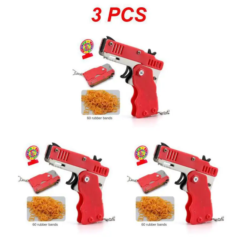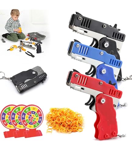 Hey, Action-Fans! Diese beiden klappbaren Gummiband-Pistolen aus Metall bringen richtig Spaß! Im Gegensatz zu billigen Holz-Modellen sind diese aus robustem ABS-Metall und halten was aus. Komplett mit 120 weichen Gummibändern - damit kann man stundenlang spielen ohne dass sie ausgehen! Die Pistolen schießen die Bänder 3-6 Meter weit und sind total ungefährlich. Super praktisch: Sie sind klappbar und haben einen Schlüsselanhänger - ideal für unterwegs! Perfekt für Drinnen und Draußen, für Kindergeburtstage oder Familien-Spieleabende. Macht sowohl Kindern als auch Erwachsenen Spaß! Ein tolles Geschenk für Weihnachten, Geburtstage oder einfach so. Aber pass auf: Immer vorsichtig damit umgehen und nicht auf Menschen zielen!