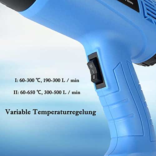 Wow, diese Heißluftpistole von Cecotec ist ein absoluter Power-Profi! Mit stolzen 2000W heizt sie ultraschnell auf - in Sekunden bist du bei der gewünschten Temperatur zwischen 50°C und 600°C. Egal ob du was auftauen, Farbe entfernen oder Material verbrennen willst - hier geht alles. \\n\\nDas Coole: Du kannst sie freihändig auf der Werkbank verwenden, das spart total viel Nerven. Und mit den beiden Luftstromstufen (350 L/min und 500 L/min) passt du die Power genau deinem Projekt an. Im Lieferumfang sind gleich 4 praktische Düsen dabei: Reflektordüse, breite Düse, Luftkonzentrator und Wärmeumlenker. So bist du für wirklich jede Art von Arbeit bestens ausgerüstet. \\n\\nOb Heimwerker, Hobby-Bastler oder Profi - diese Heißluftpistole macht einfach Spaß! Die Temperaturregelung ist super präzise, die Verarbeitung fühlt sich hochwertig an und die Handhabung ist intuitiv. Du willst Zeit sparen und professionelle Ergebnisse? Dann ist die Hell Gun 3500 genau dein Ding! Einfach einschalten, Temperatur wählen und loslegen - simpler geht's nicht.