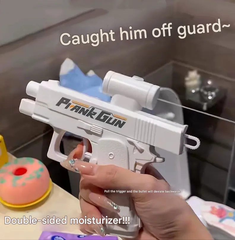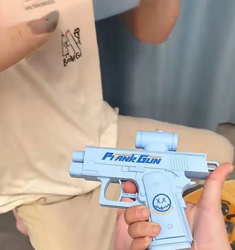 Diese Wasserpistole ist absolut verrückt und perfekt für lustige Streiche! Sie hat zwei Schalter: Drückst du den normalen, spritzt das Wasser rückwärts - total unerwartet! Drückst du den hinteren Schalter, schießt sie normal nach vorne. Aus robustem Kunststoff und in blauer Farbe. Perfekt für Sommerpartys, Gartenfeste oder einfach um Freunde zu überraschen. Aber Vorsicht - deine Freunde werden sich vielleicht revanchieren wollen! Einfach befüllen, Schalter umlegen und los geht der Wasserspaß. Für alle, die es lieben, andere zu überraschen und für lustige Momente zu sorgen. Der absolute Hit bei jeder Gartenparty!