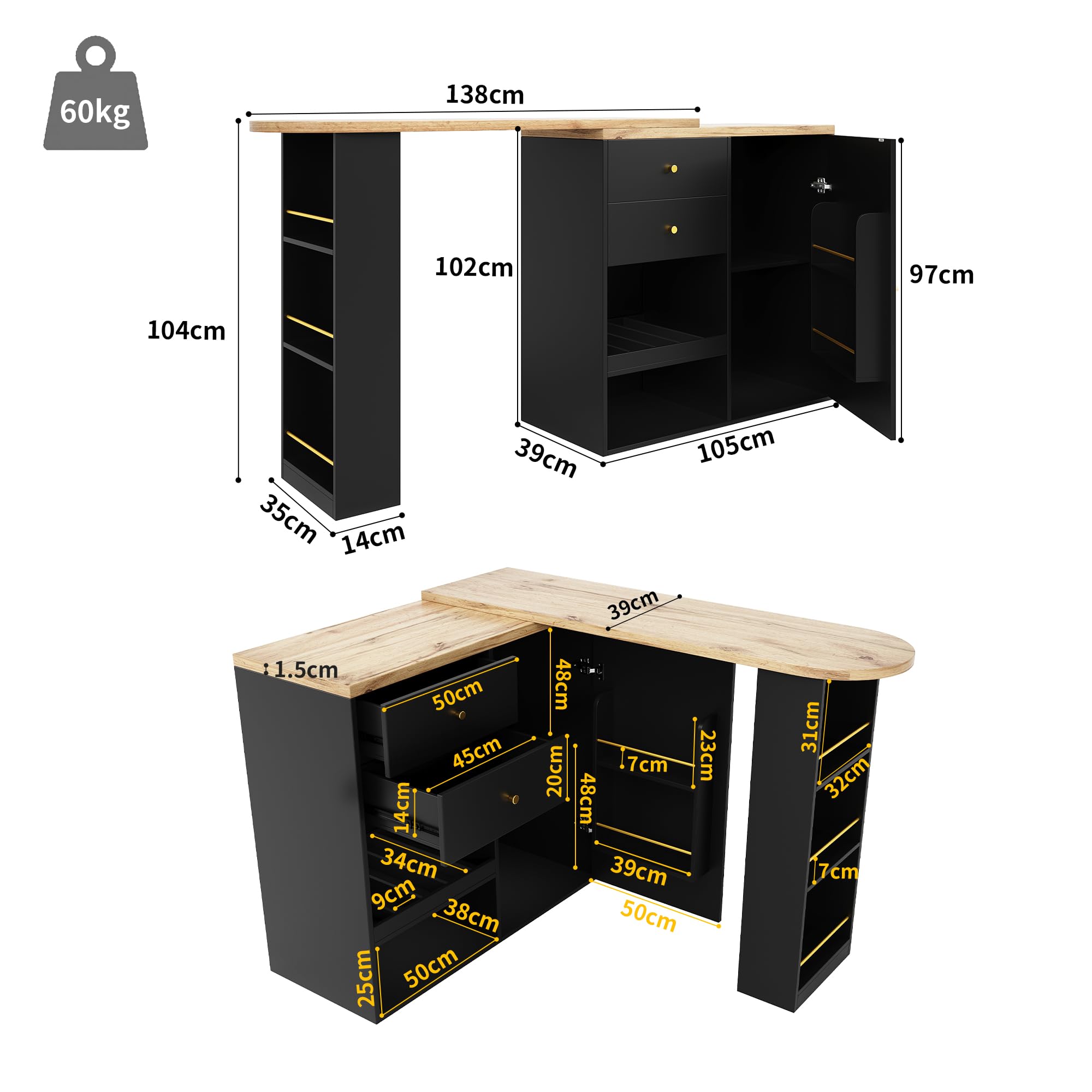 Dieser Gxffipw Bartisch ist total vielseitig und stylisch! Mit 105cm Höhe perfekt als Stehtisch, Kücheninsel oder Sideboard. Das innovative 360° Drehdesign der Seitenablagen sorgt für maximale Flexibilität. Ausziehbar von 138cm auf 204cm bei 39cm Tiefe - passt sich deinen Bedürfnissen an. Mega viel Stauraum: Snack-Regal, Schranktüren mit Stauraum, zwei ausklappbare Schubladen. Elegante Schranktüren mit filigranen Mustern und metallenen Griffen. Platzsparende Flip-Top-Struktur kombiniert Modernität mit Funktionalität. Perfekt für Küche, Esszimmer oder Wohnbereich. Wird in zwei Paketen geliefert (können unterschiedlich ankommen). Einfache Montage mit beiliegender Anleitung. Mach deine Wohnung zum echten Hingucker! Ein Möbelstück, das handwerkliche Exzellenz beweist.