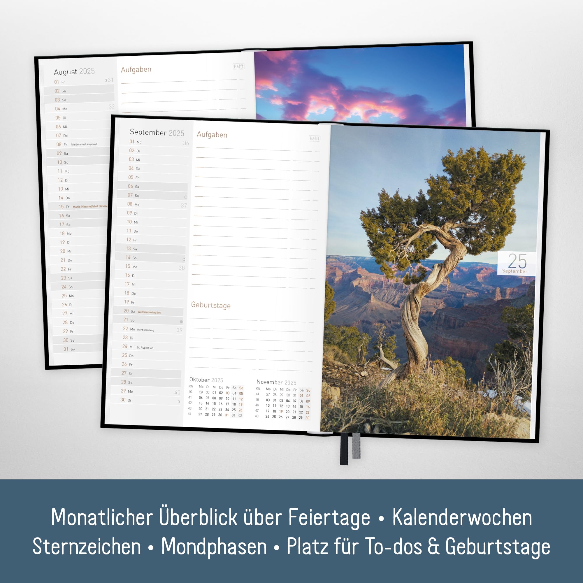 Du suchst einen praktischen Begleiter für deine Termine? Der Häfft Chäff-Timer Mini 2025 ist genau das Richtige! Im handlichen A6+ Format (11x16cm) passt er in jede Tasche und bietet trotzdem genug Platz für alle deine Termine. Mit einer Woche pro Doppelseite behältst du immer den Überblick. Enthalten sind To-do-Listen, Notizfelder, Monatsübersichten und sogar Feiertage und Schulferien für Deutschland und Österreich. Das robuste Cover mit matter Oberfläche und Glanzlack-Highlights hält auch bei täglichem Gebrauch was aus. Besonders praktisch: Das FSC-zertifizierte Papier ist klimafreundlich - du planst also mit gutem Gewissen. Mit Lesebändchen, Adressbereich und Urlaubsplaner wird dieser Timer dein treuer Begleiter durch das ganze Jahr 2025!